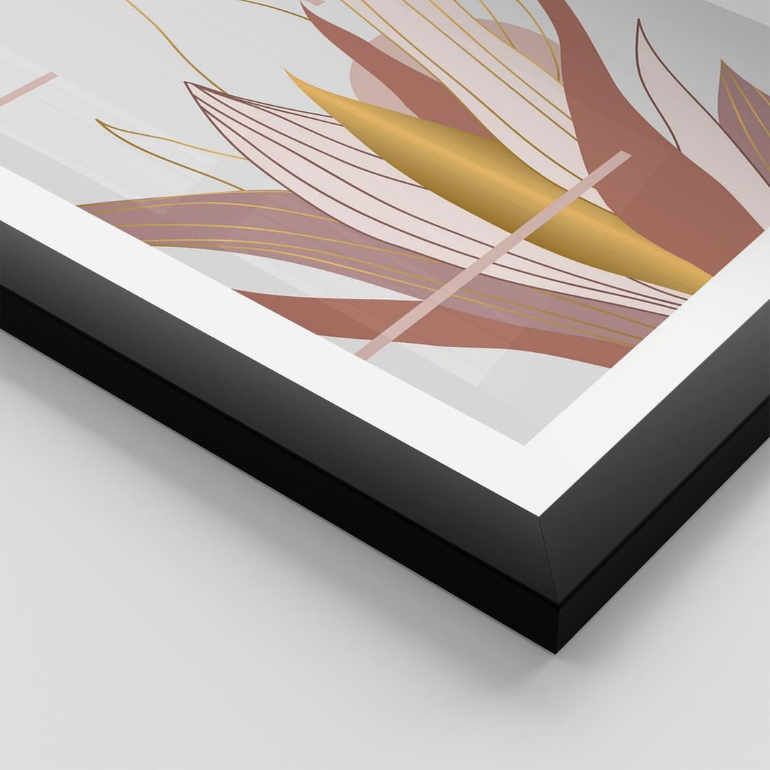 Plakat w ramie 40x50 - Złota Grafika Liści: Wyjątkowa Dekoracja - liście, złoto - rama czarna