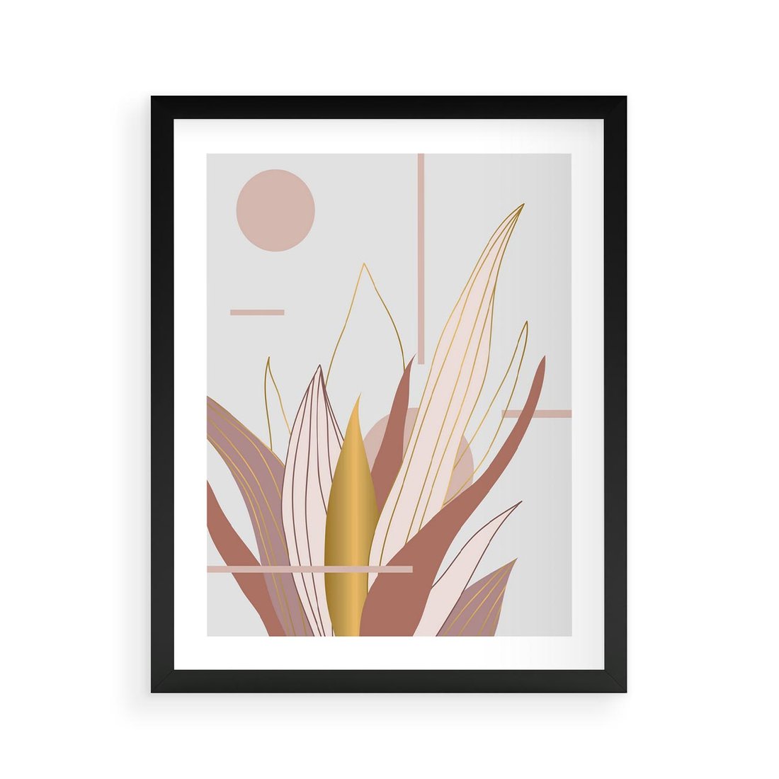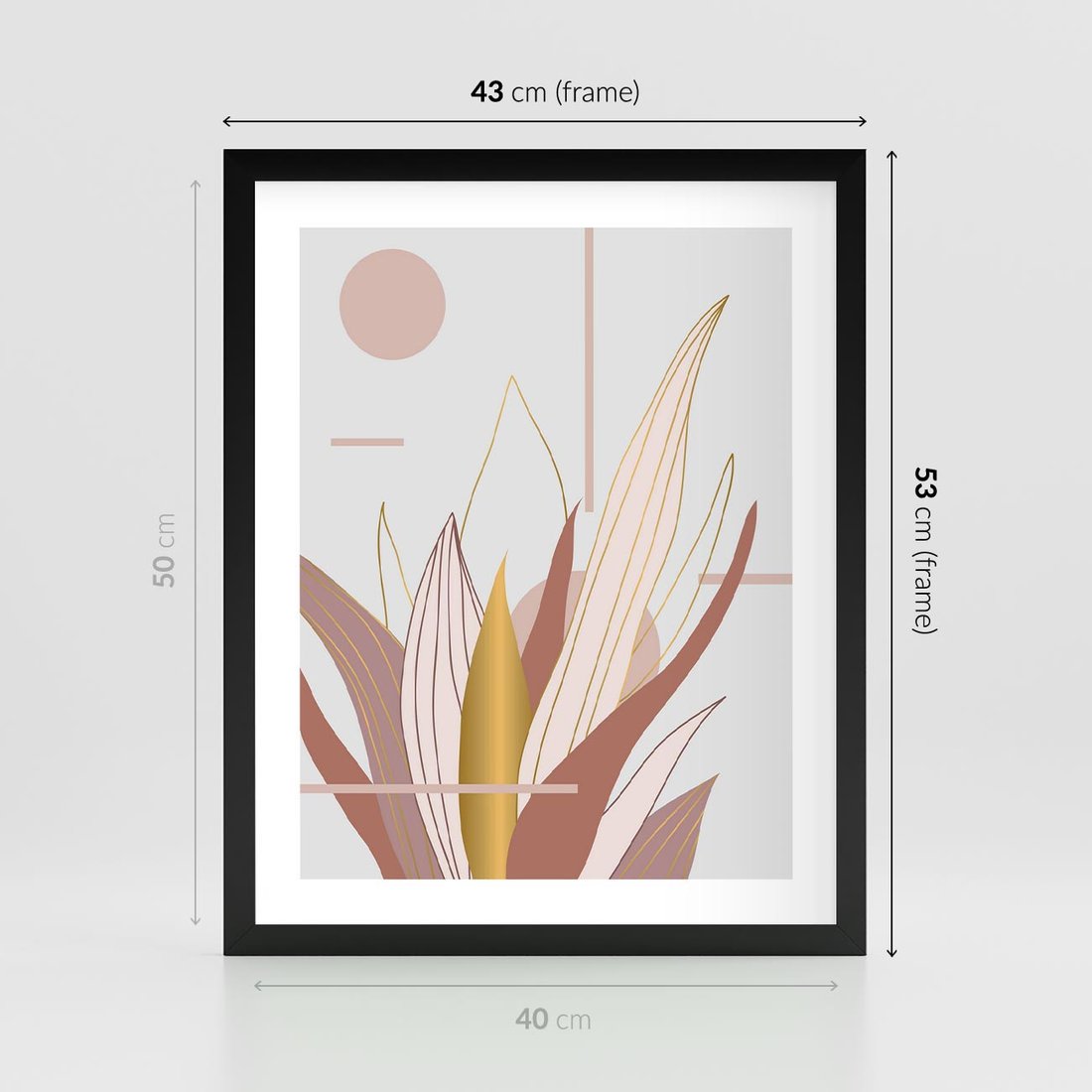 - Plakat w ramie 40x50 - Złota Grafika Liści: Wyjątkowa Dekoracja