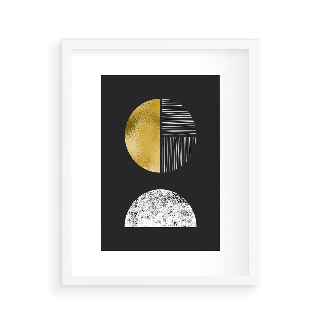 Plakat w ramie 40x50 - Złote Koła i Geometryczne Formy - grafika, modern - rama biała