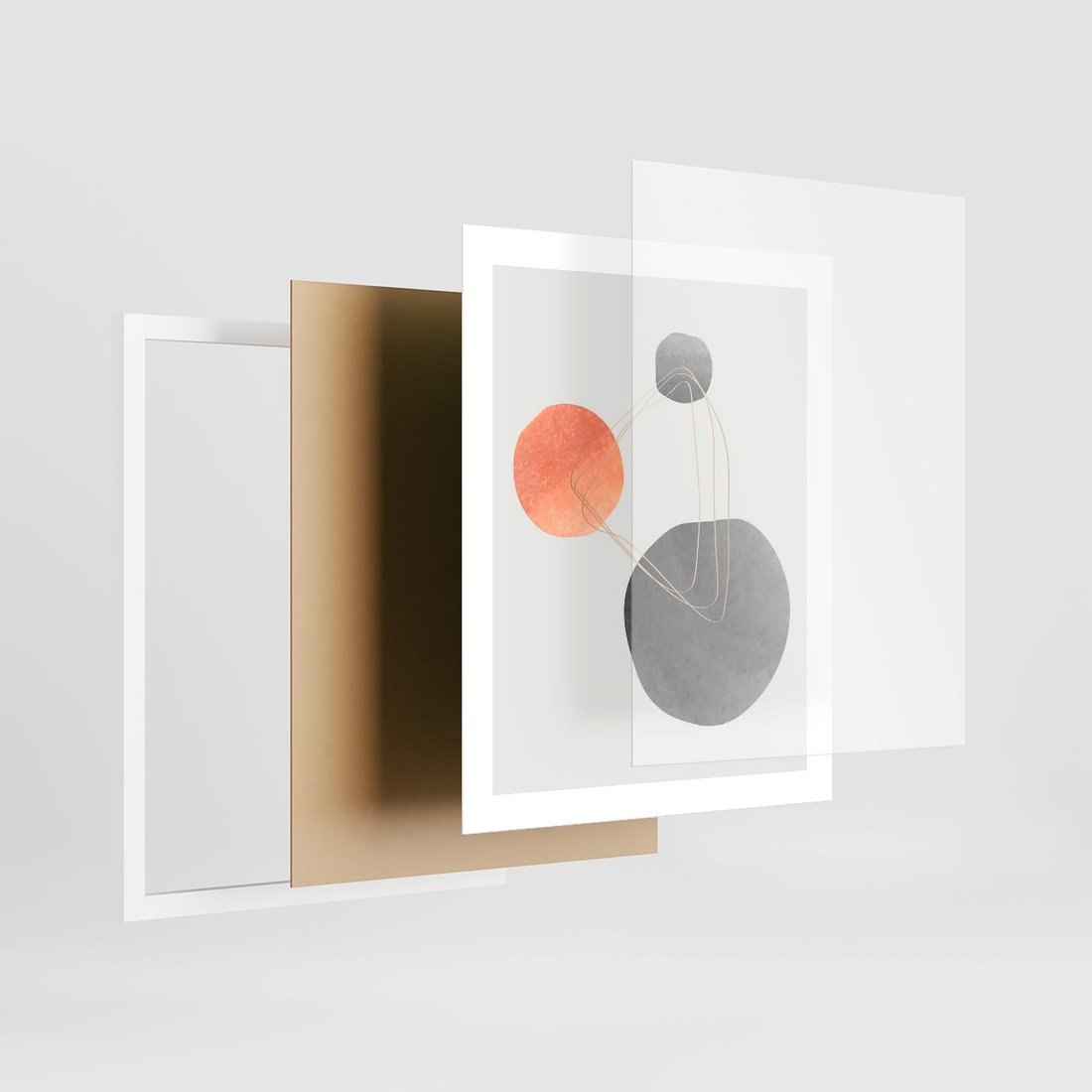 Obraz przedstawia nowoczesny plakat o charakterze abstrakcyjnym, z wykorzystaniem złotych elementów i akwarelowych plam. Ta kompozycja dodaje elegancji i luksusowego wyglądu do wnętrza, idealnie pasując do nowoczesnych aranżacji.