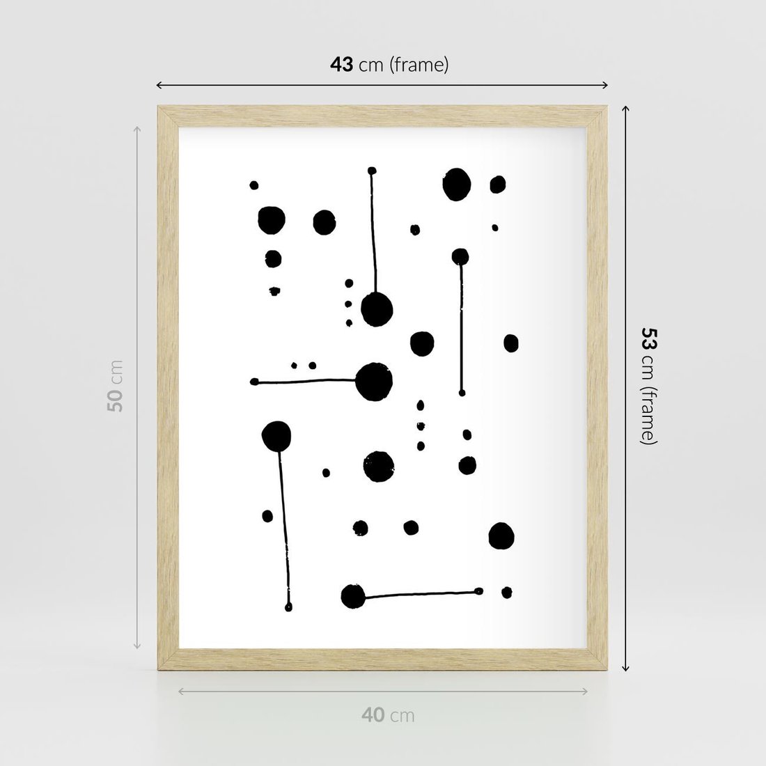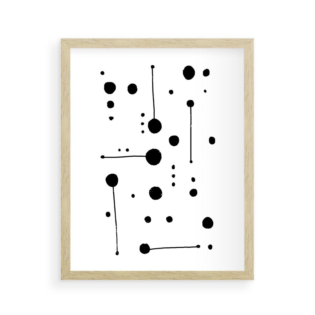 Nasz czarno-biały plakat to subtelne połączenie abstrakcji i minimalizmu, gdzie kropki i kreski tworzą misterną kompozycję. To delikatne wykorzystanie kontrastu, które zachwyca prostotą i elegancją. Ten plakat jest idealnym wyborem dla miłośników nowoczesnej sztuki, którzy cenią sobie wyrafinowany design i znaczeniowe detale.