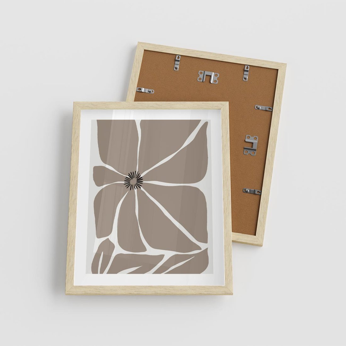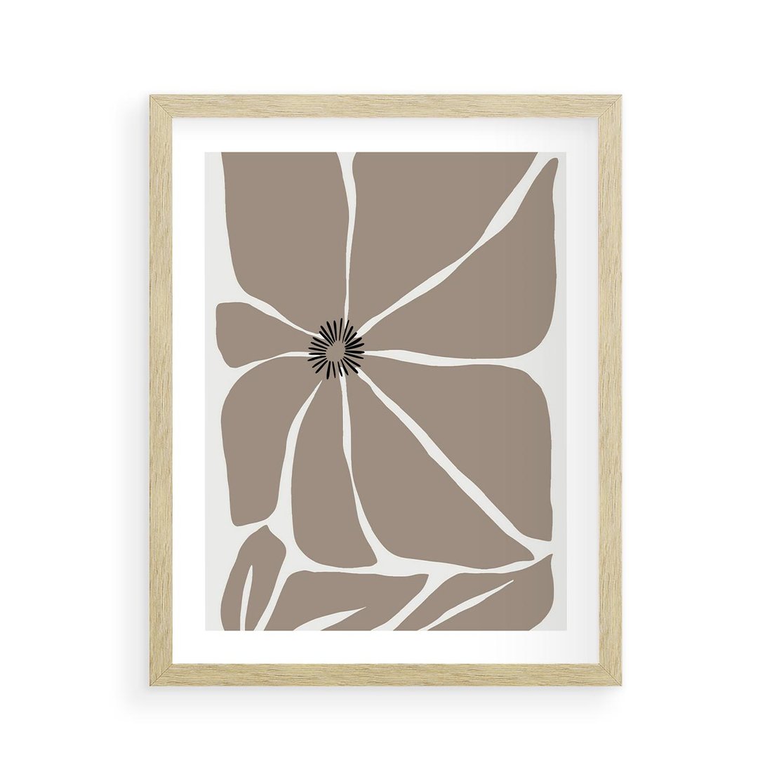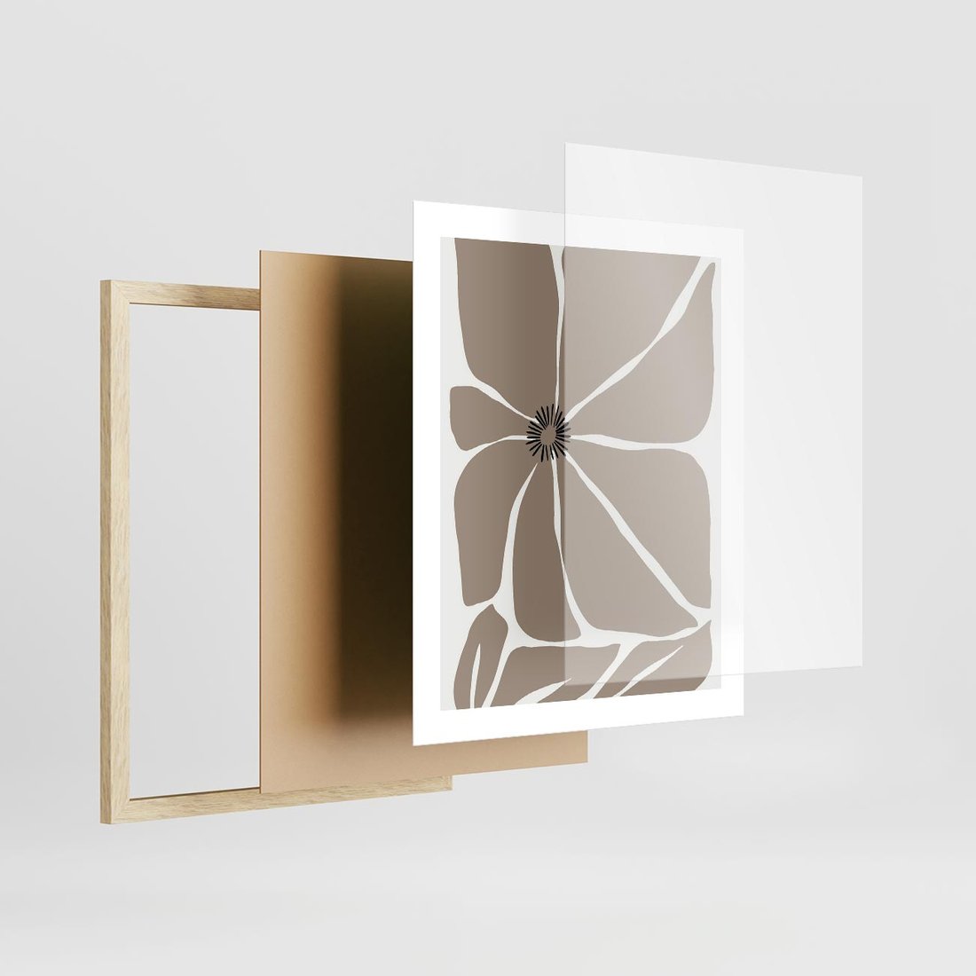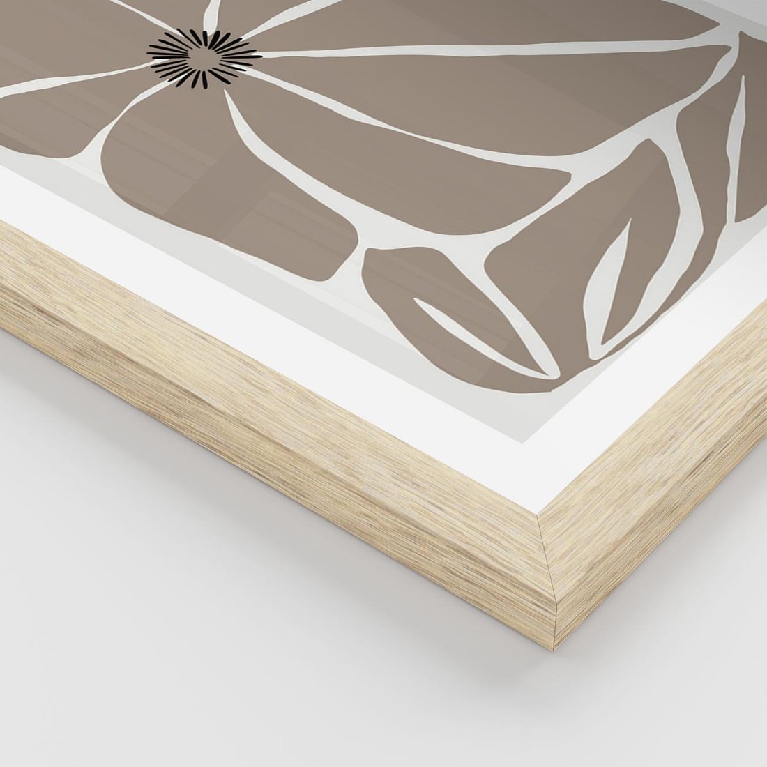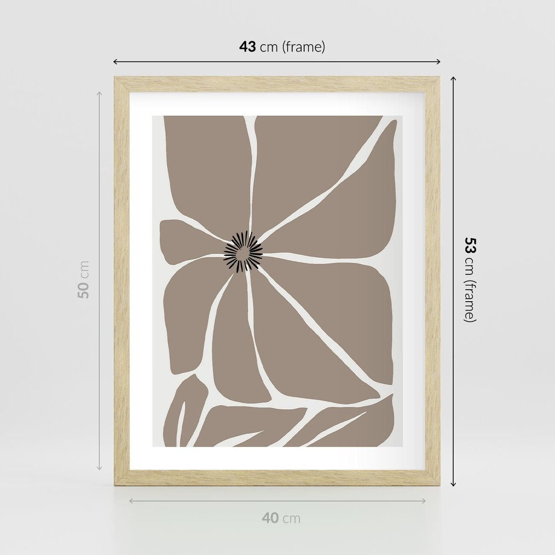 Plakat w ramie 40x50 - Złudne Zmysły - abstrakcyjny kwiat, beże i brązy - rama drewno