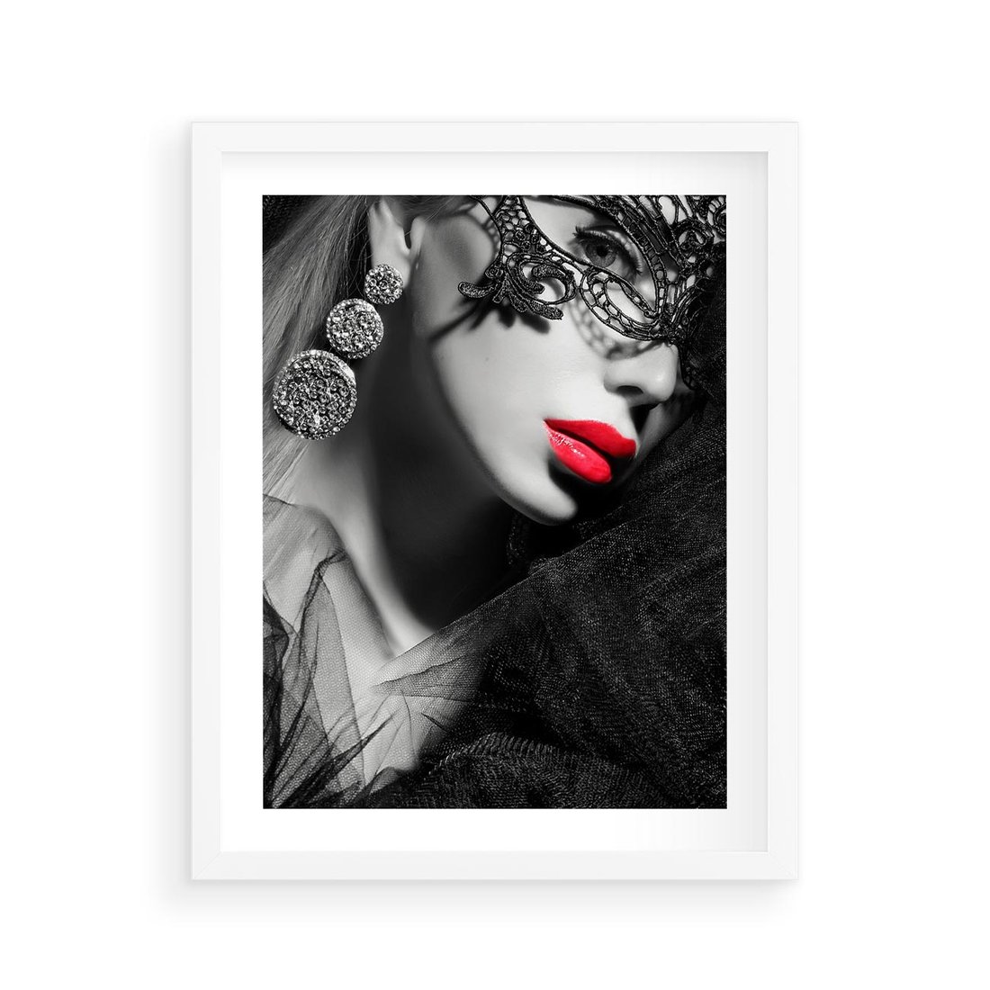 Plakat w ramie 40x50 - Zmysłowe usta damy - kobieta, usta - rama biała
