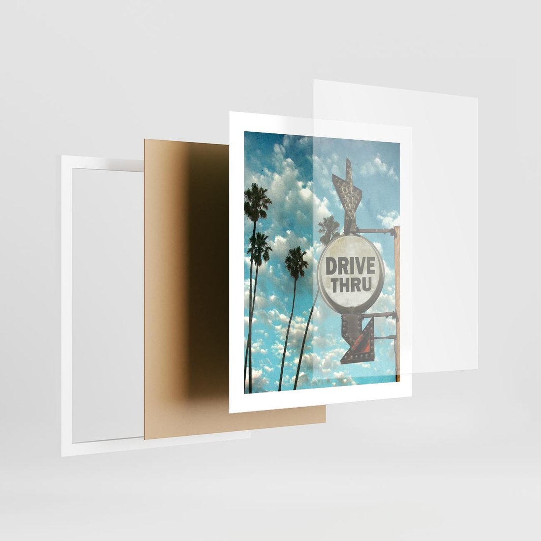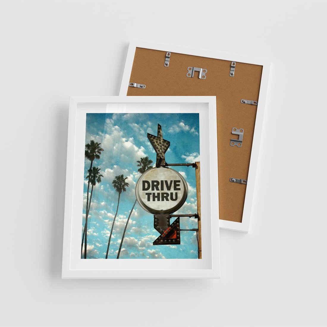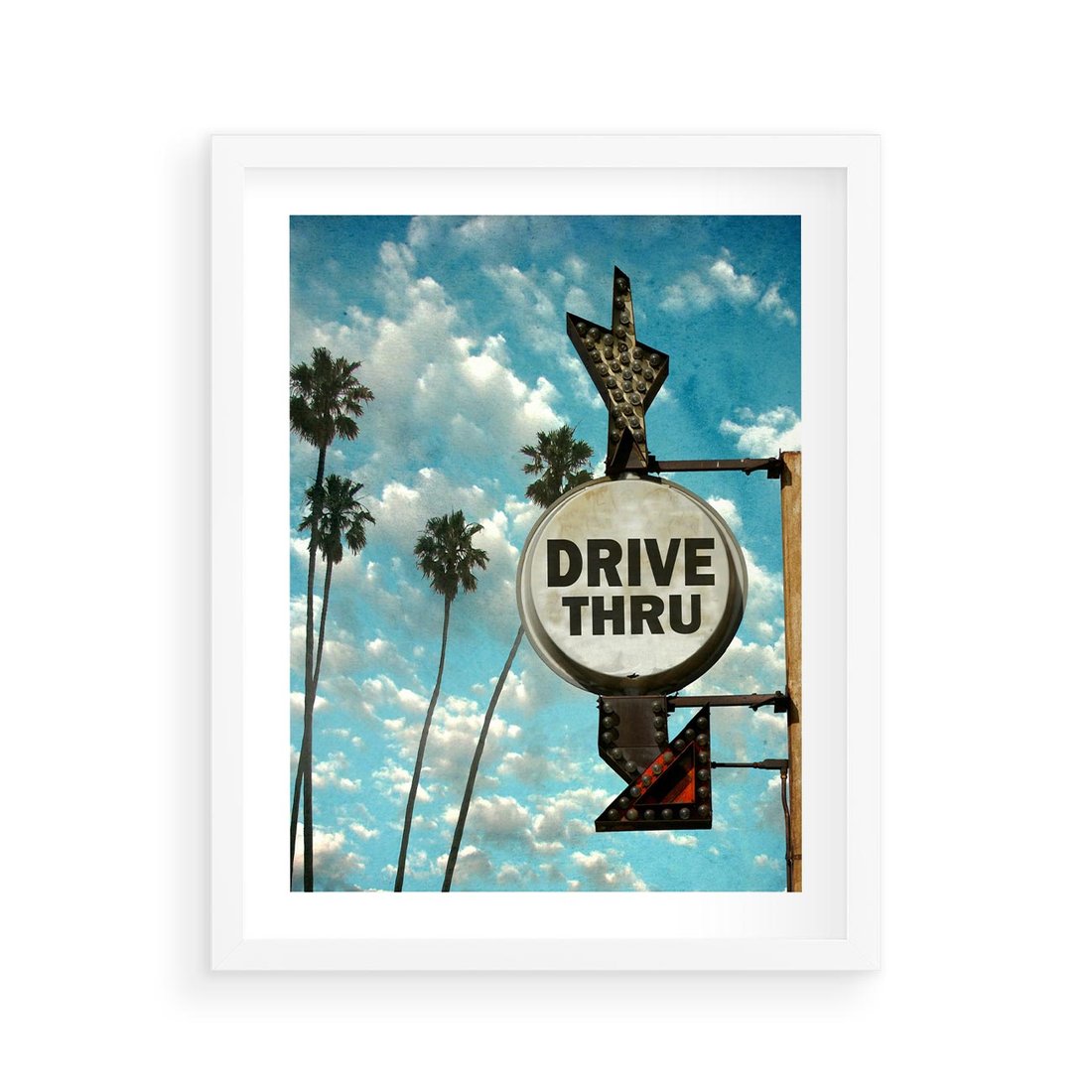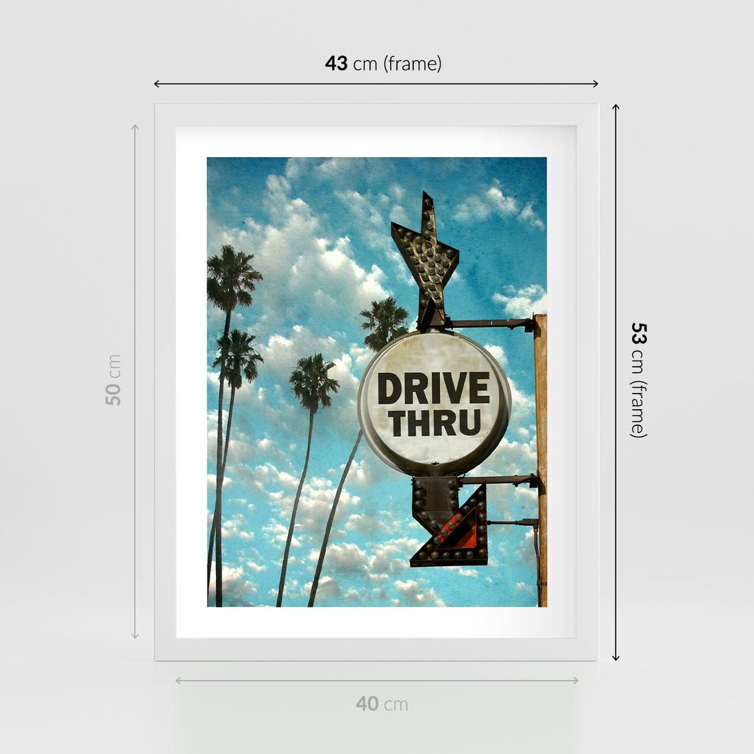 Plakat w ramie 40x50 - Znaki Palm: Relaksująca Oaza - znak, palmy - rama biała