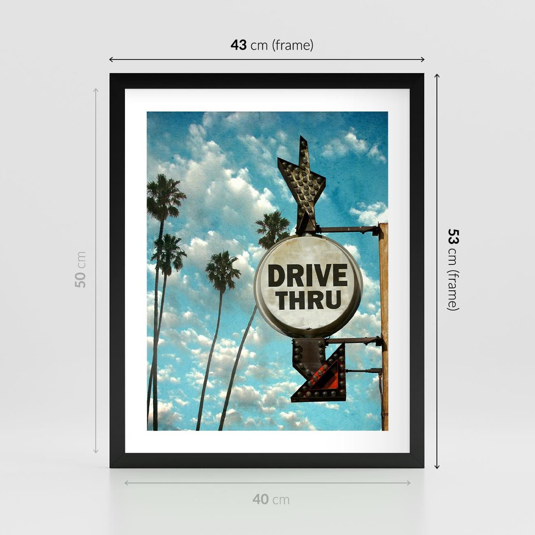 Plakat w ramie 40x50 - Znaki Palm: Relaksująca Oaza - znak, palmy - rama czarna