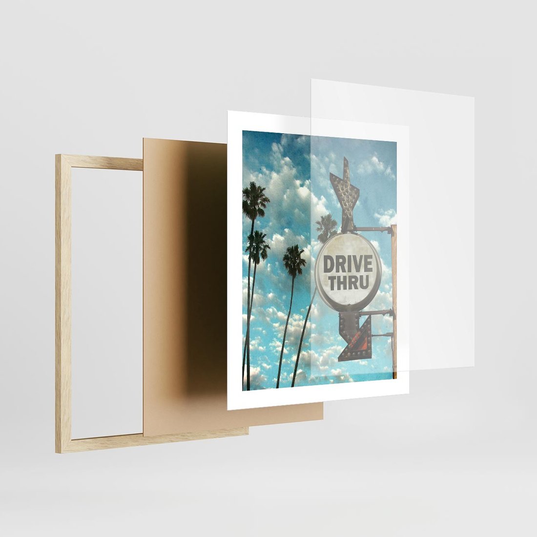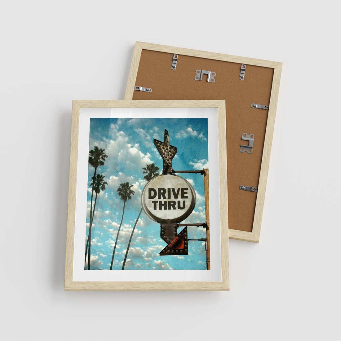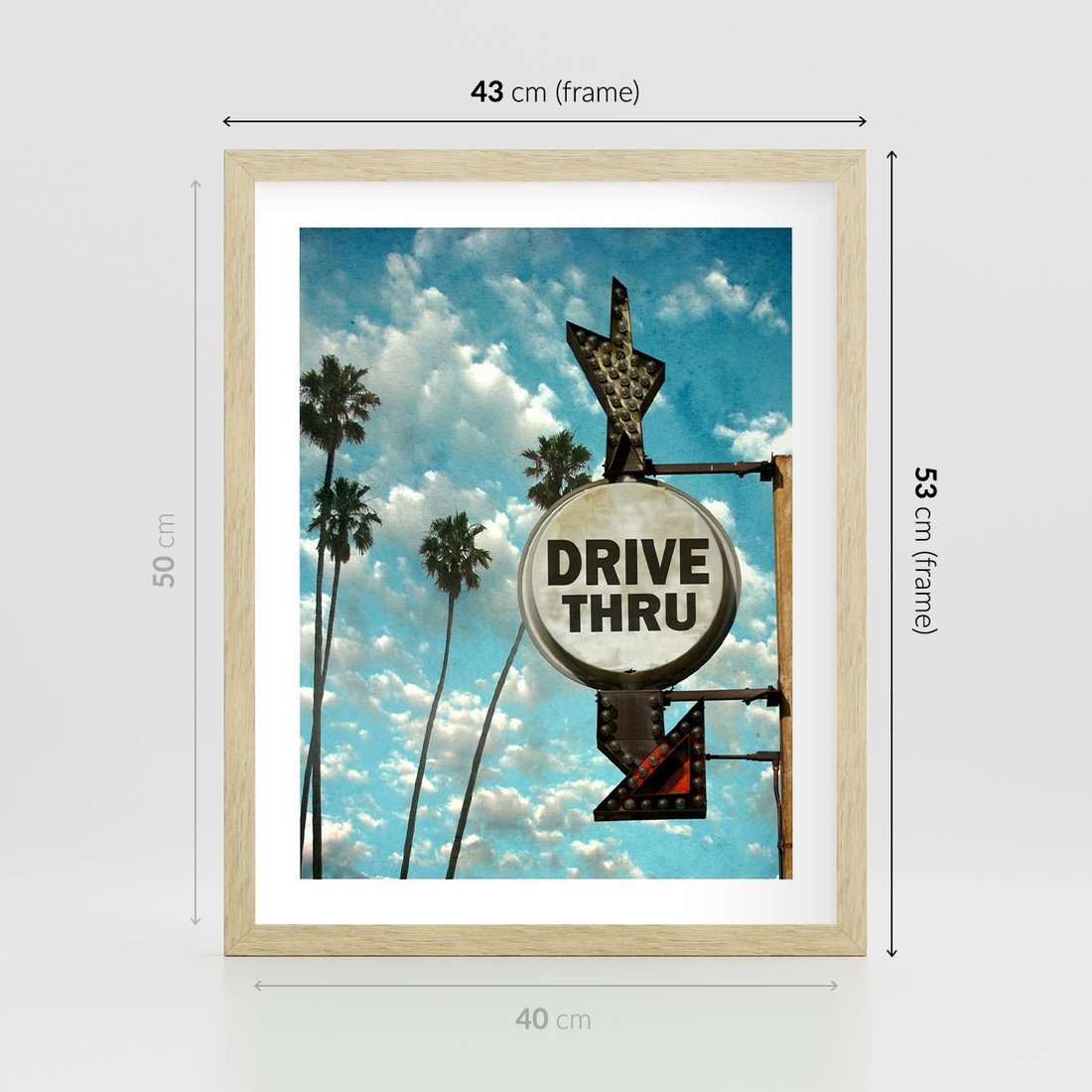 Plakat w ramie 40x50 - Znaki Palm: Relaksująca Oaza - znak, palmy - rama drewno