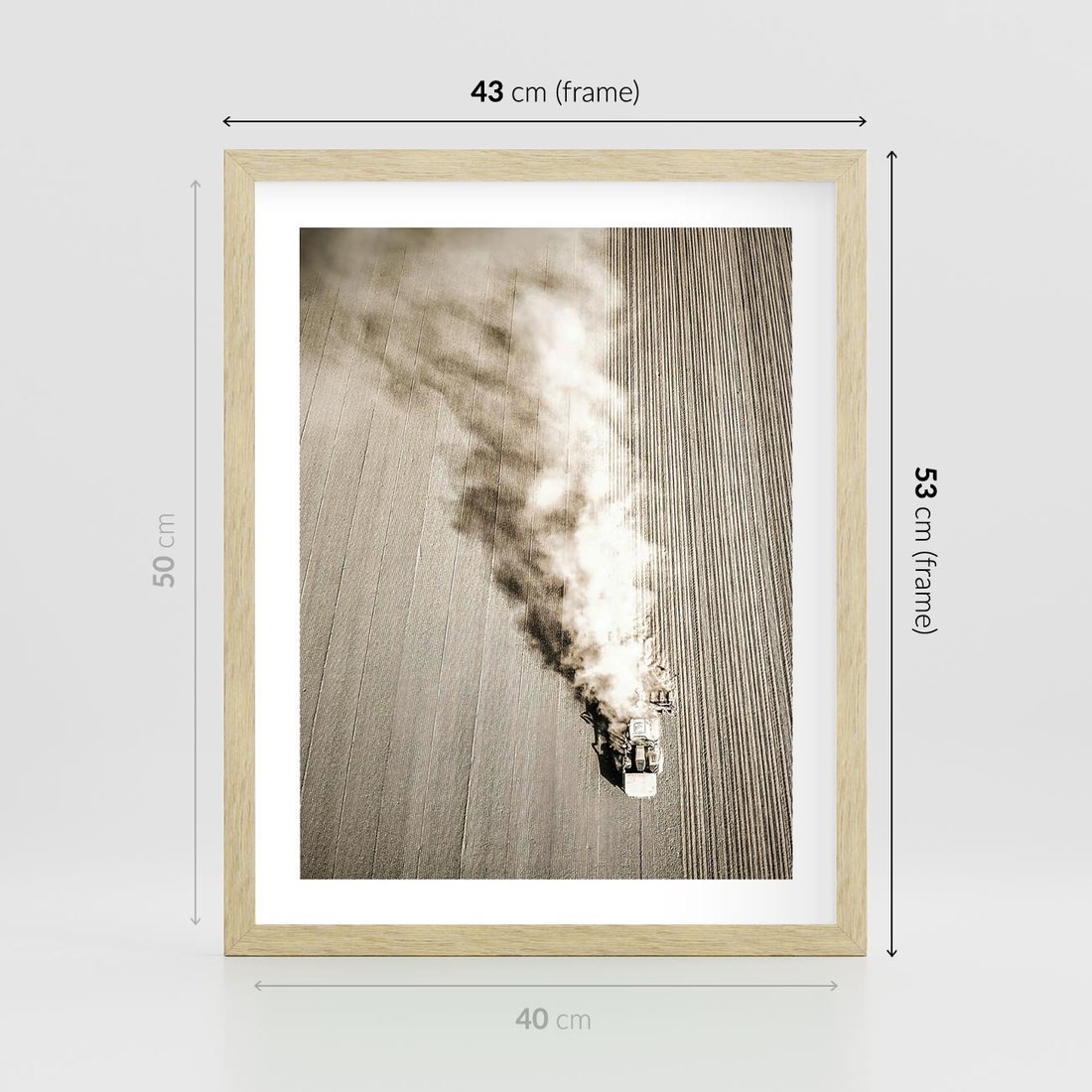 Plakat w ramie 40x50 - Żniwa na Wsi - pole, traktor na polu - rama drewno