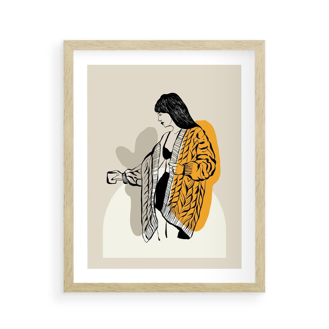 Plakat w ramie 40x50 - Żółte Akcenty w Grafice - grafika, minimalizm - rama drewno