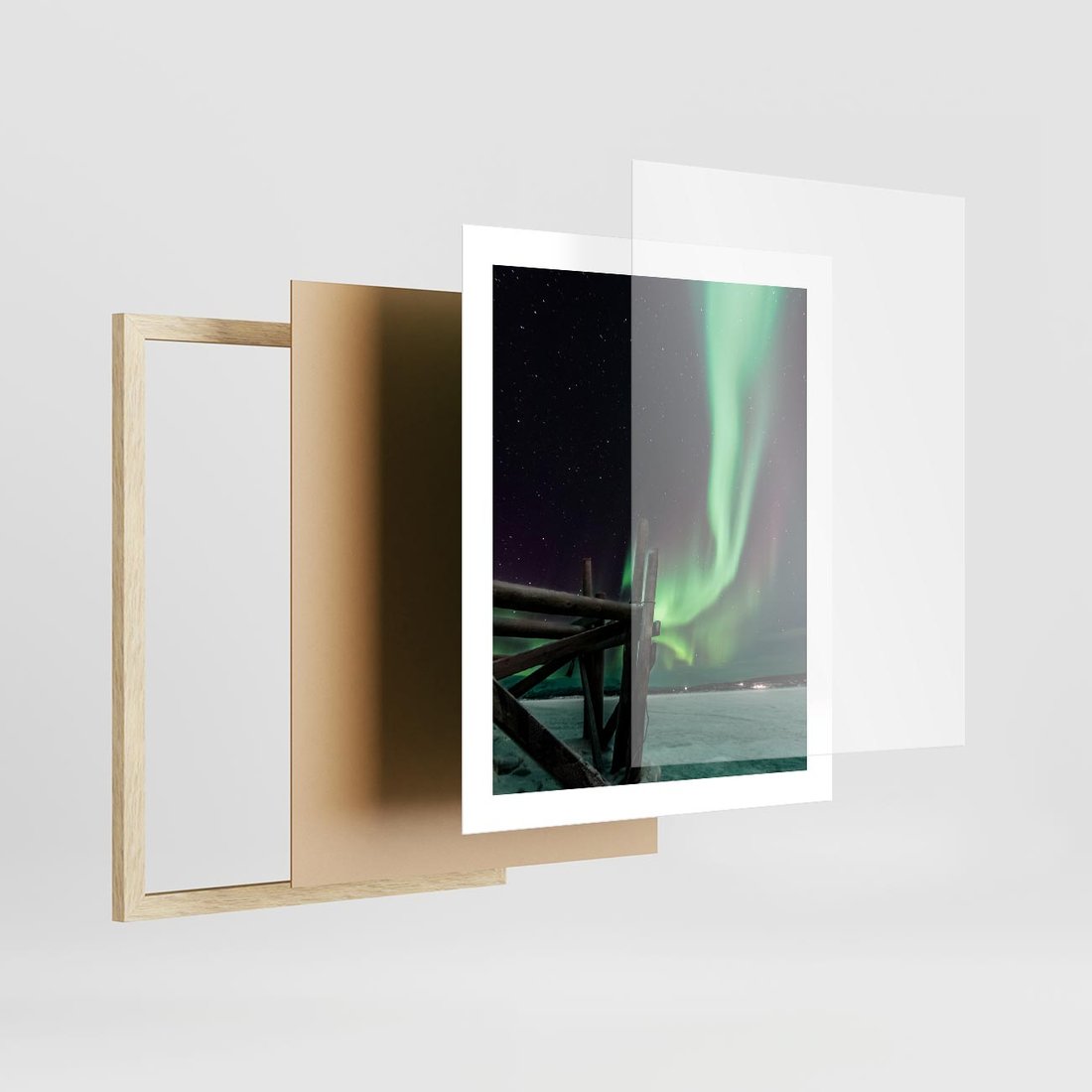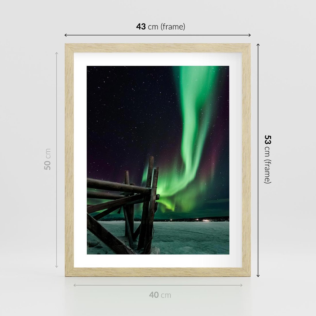 Plakat w ramie 40x50 - Zorza polarna w tajemniczej nocnej przestrzeni - zorza, polarna - rama drewno