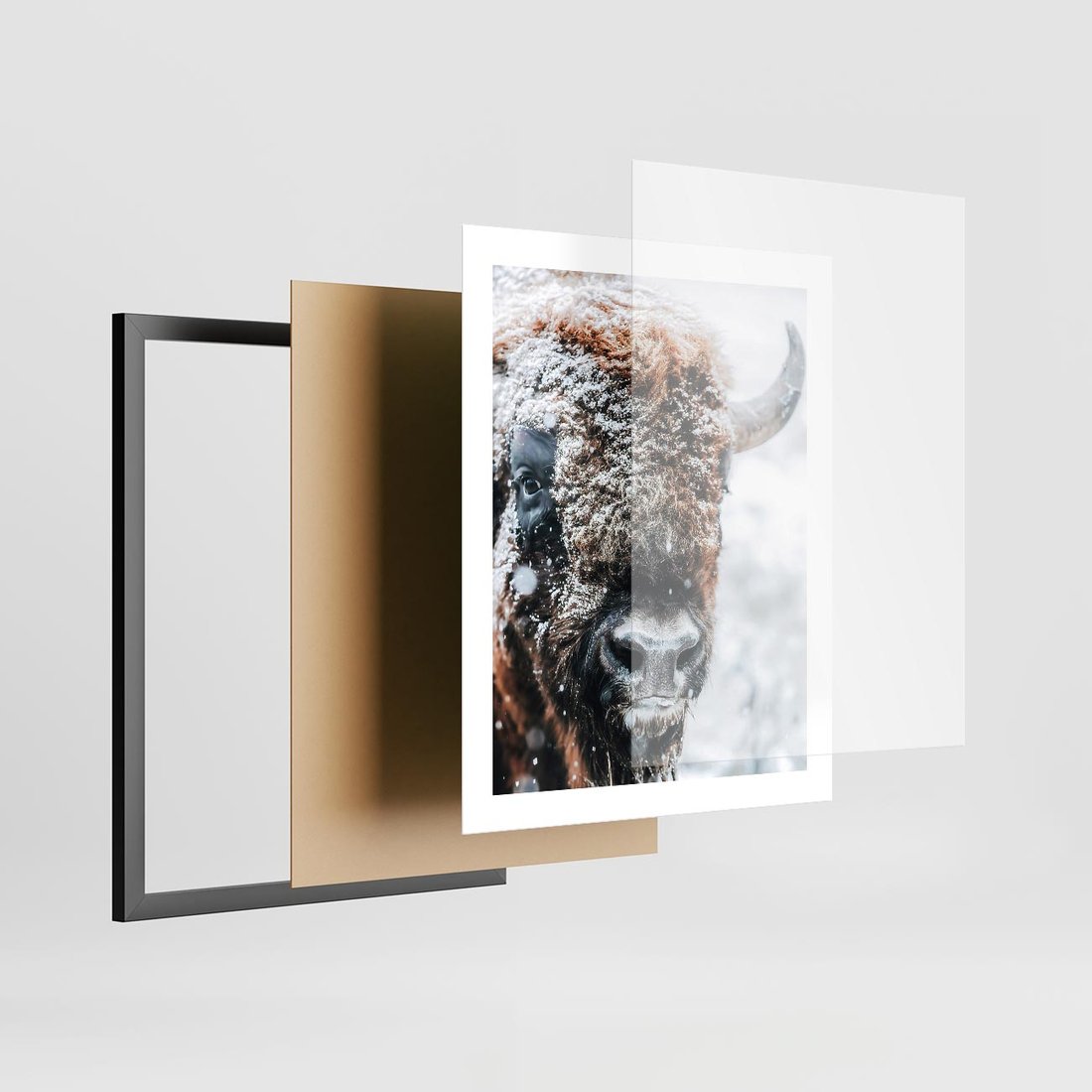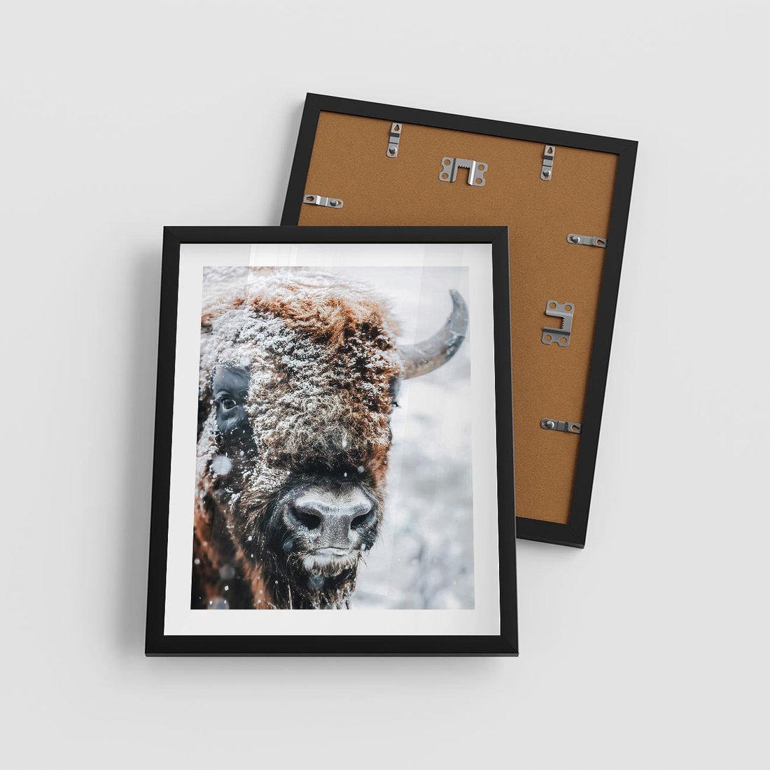 Plakat w ramie 40x50 - Żubr w Krainie Śniegu - żubr, zima - rama czarna