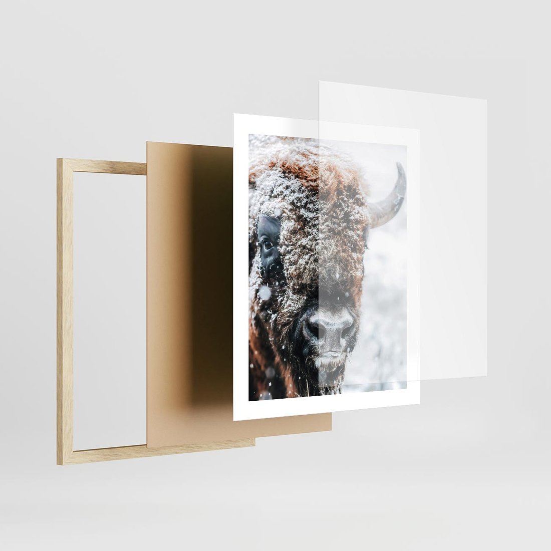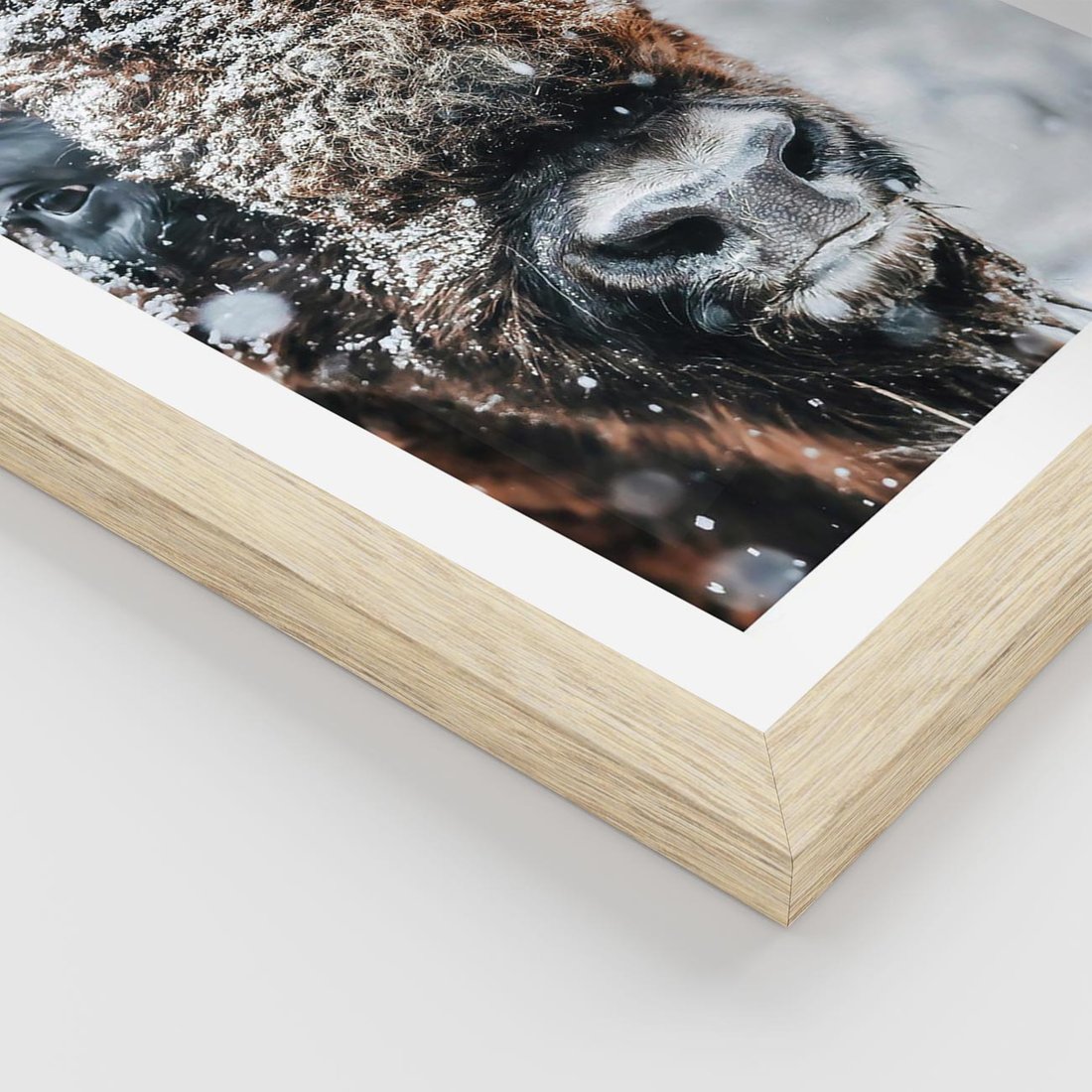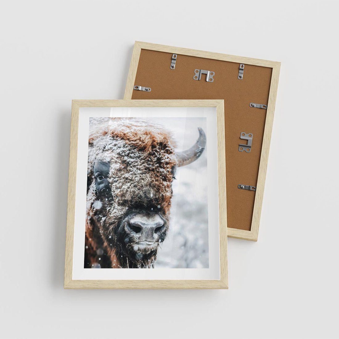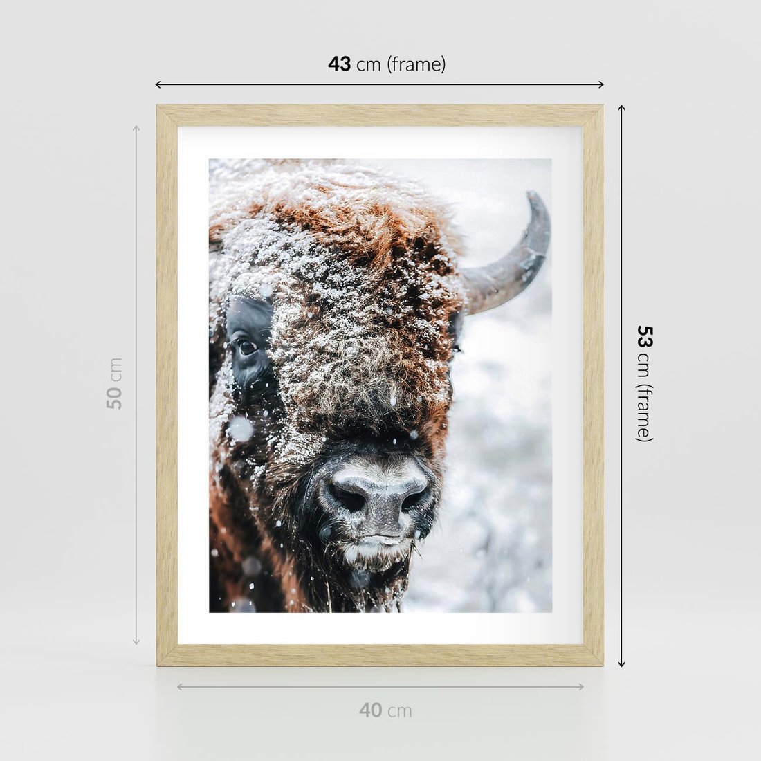 Plakat w ramie 40x50 - Żubr w Krainie Śniegu - żubr, zima - rama drewno