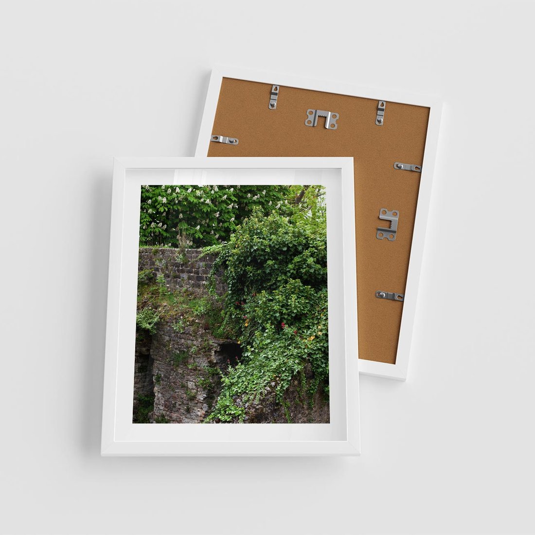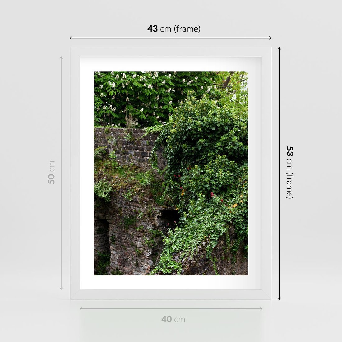 Plakat w ramie 40x50 - Żywiołowa Zieleń - mur, liście - rama biała