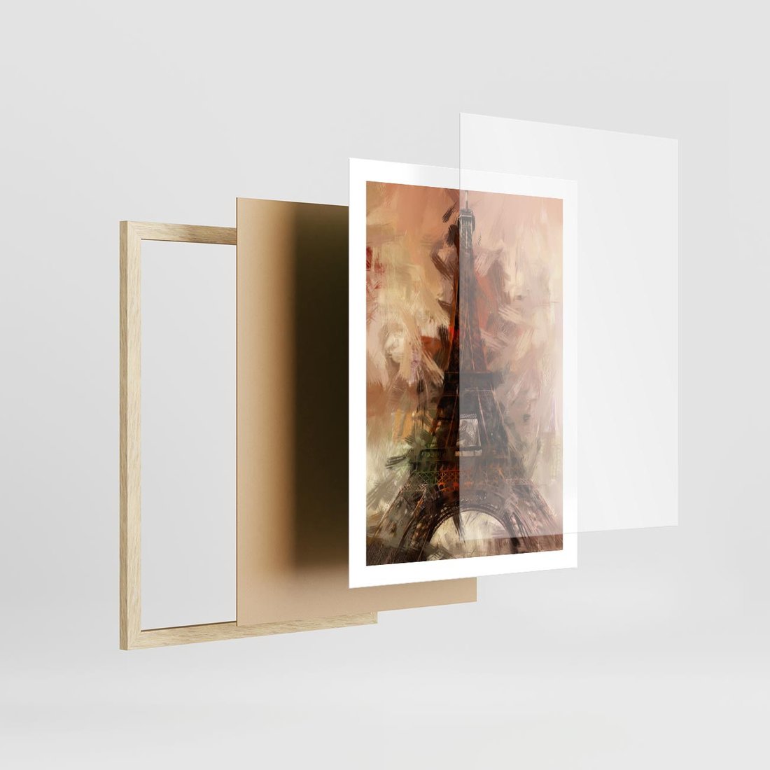 Plakat w ramie 50x70 - Abstrakcyjna Eiffla - miasto w nowej formie - Eiffla, abstrakcja - rama drewno