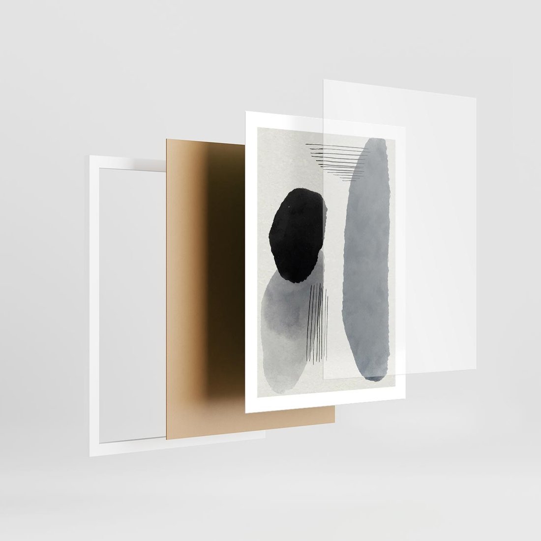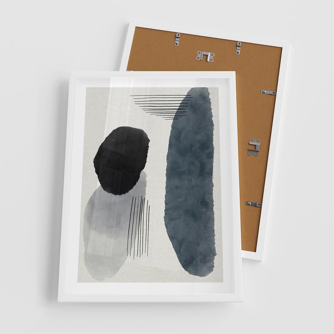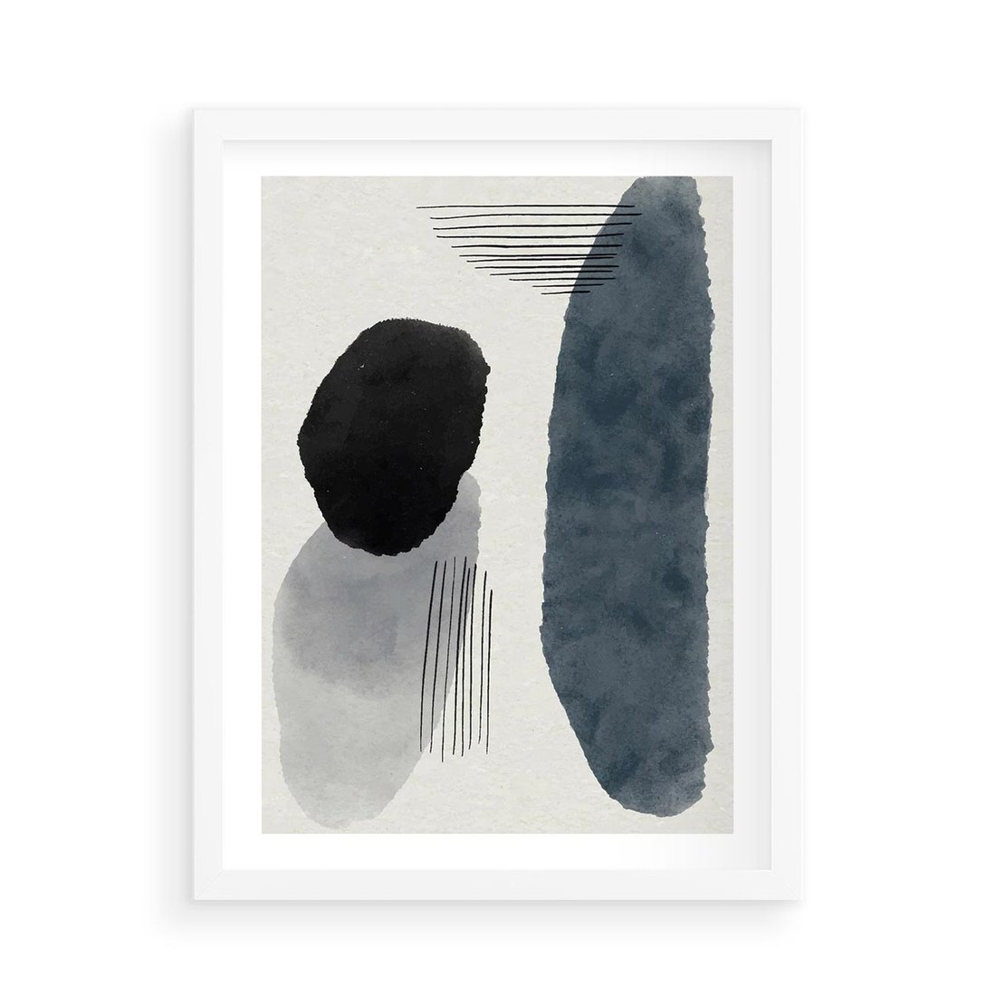 Plakat w ramie 50x70 - Abstrakcyjna Gra Szarości - abstrakcyjna grafika, akwarela - rama biała