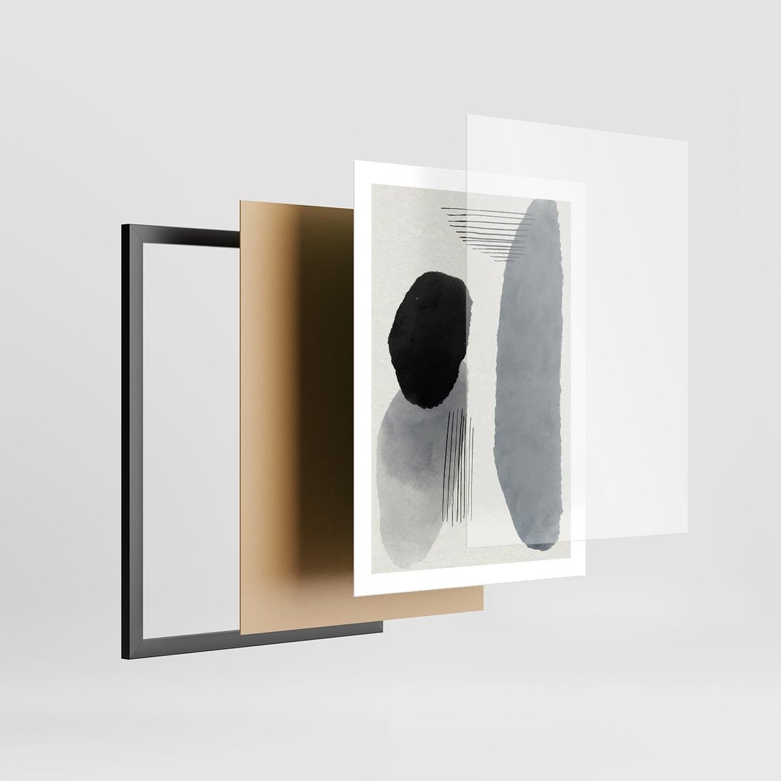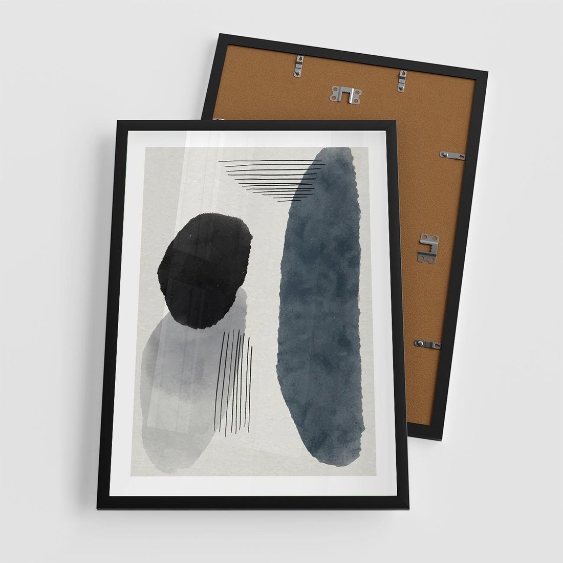 Plakat w ramie 50x70 - Abstrakcyjna Gra Szarości - abstrakcyjna grafika, akwarela - rama czarna