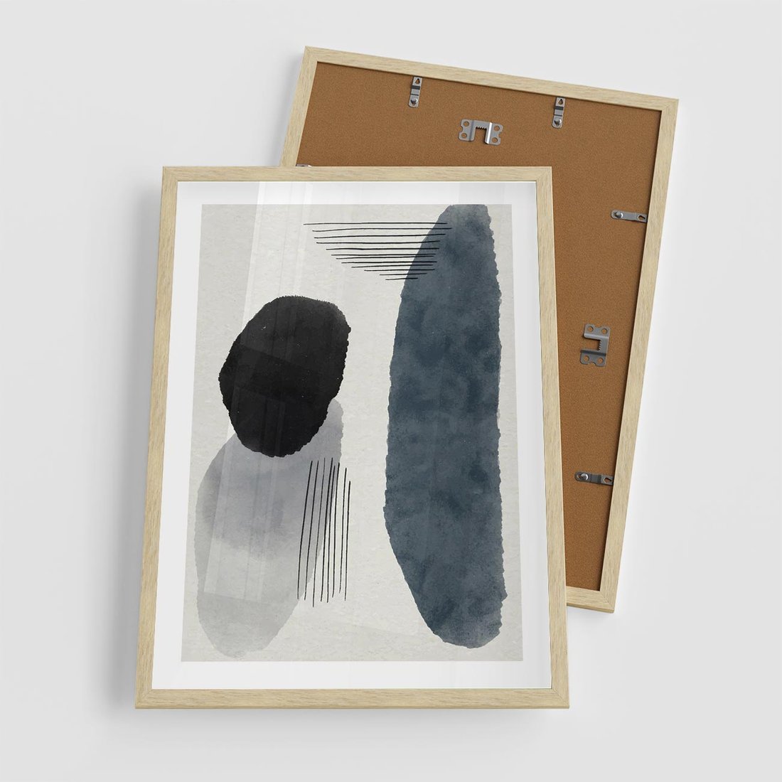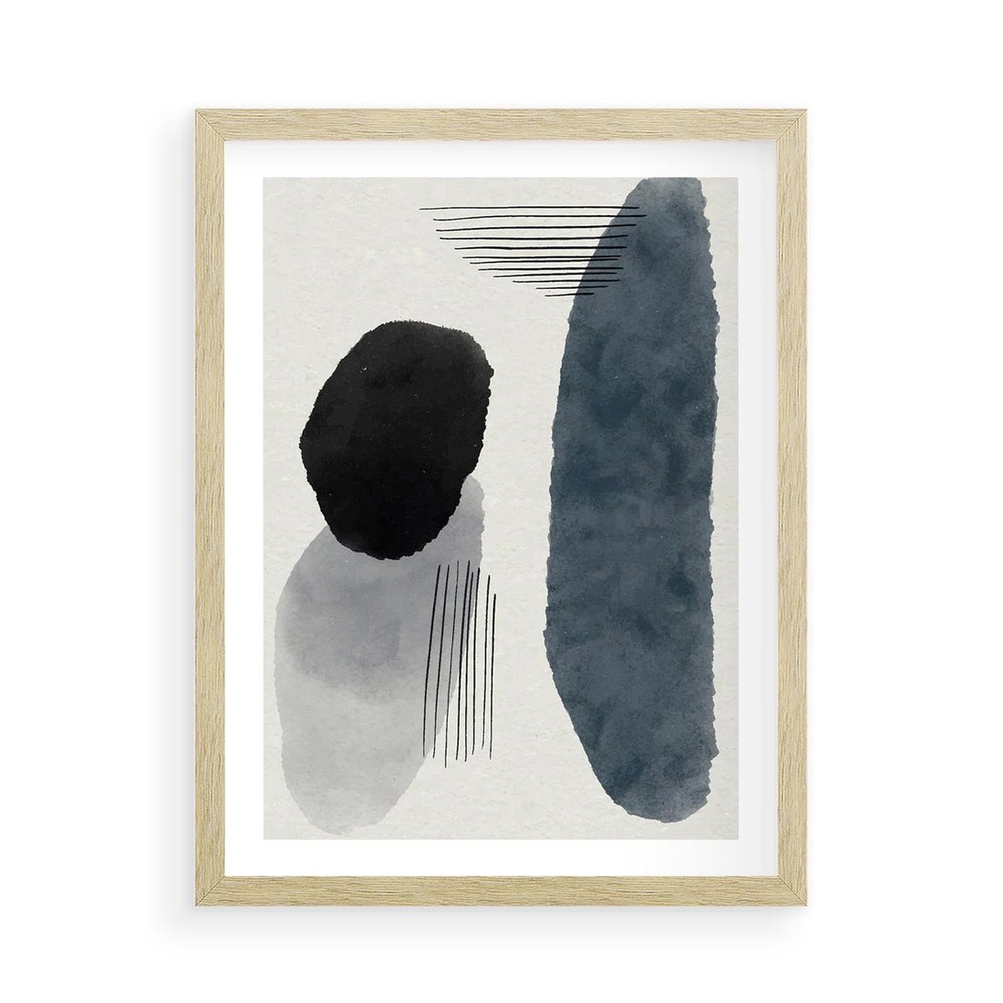 Plakat w ramie 50x70 - Abstrakcyjna Gra Szarości - abstrakcyjna grafika, akwarela - rama drewno