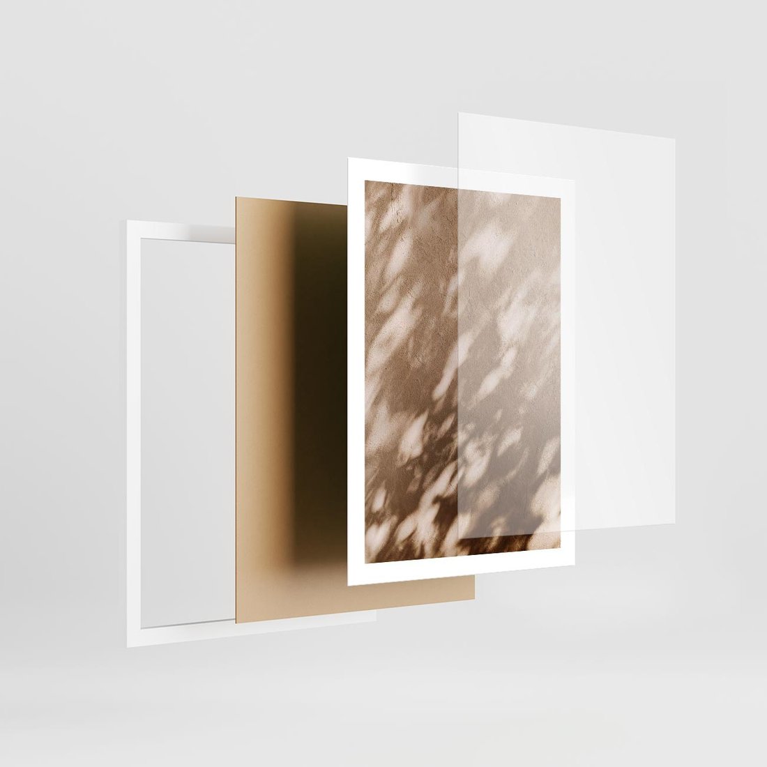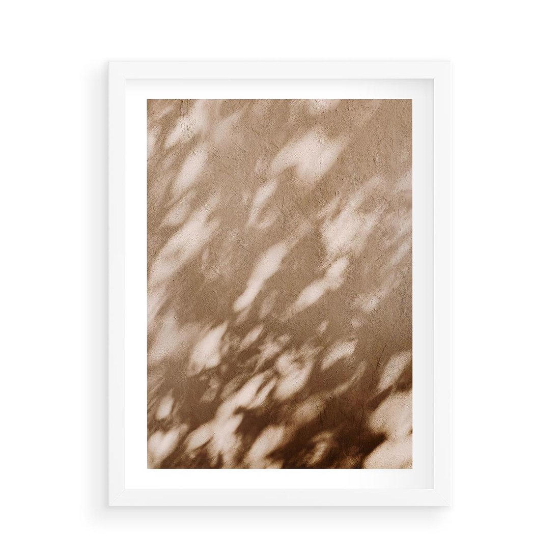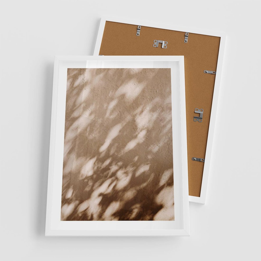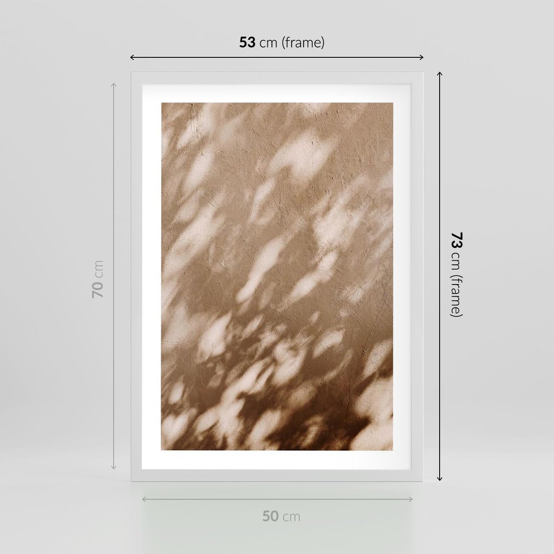 Plakat w ramie 50x70 - Abstrakcyjna Kompozycja: Cień na Ścianie - cień na ścianie, beżowe kolory - rama biała