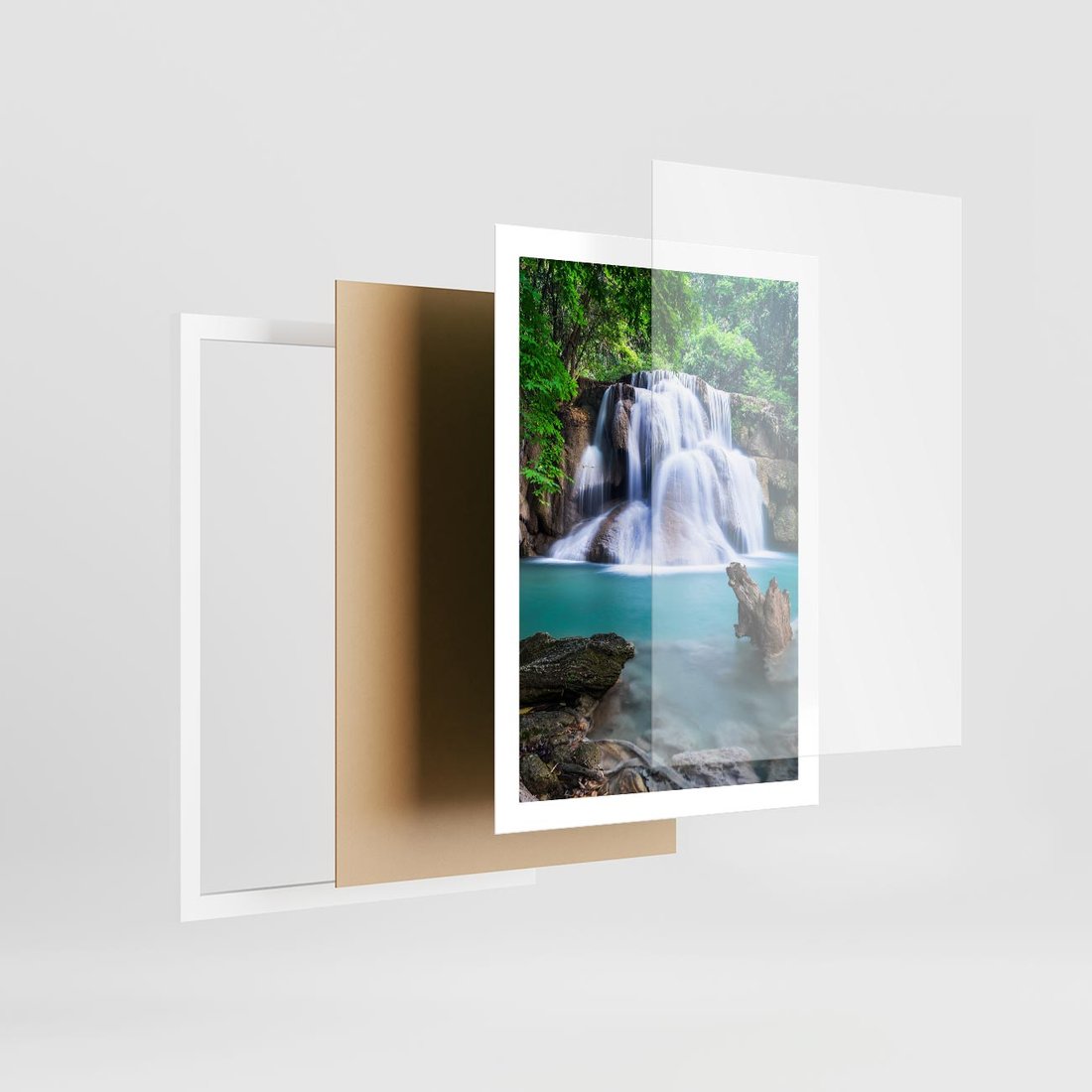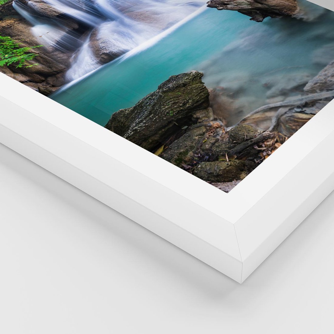 Plakat w ramie 50x70 - Abstrakcyjna nowoczesność - wodospad, woda - rama biała