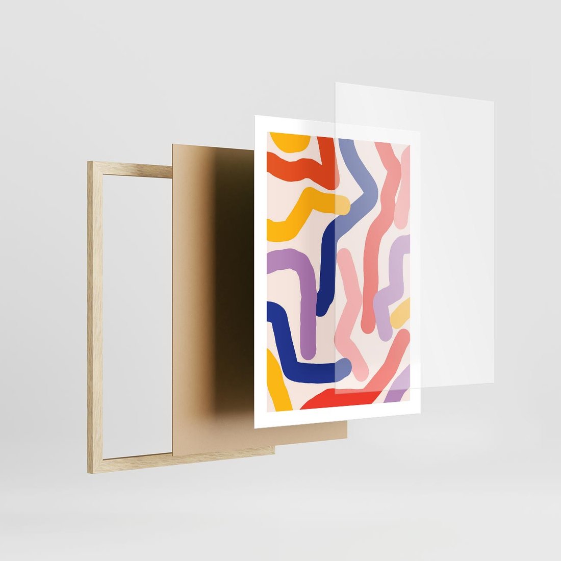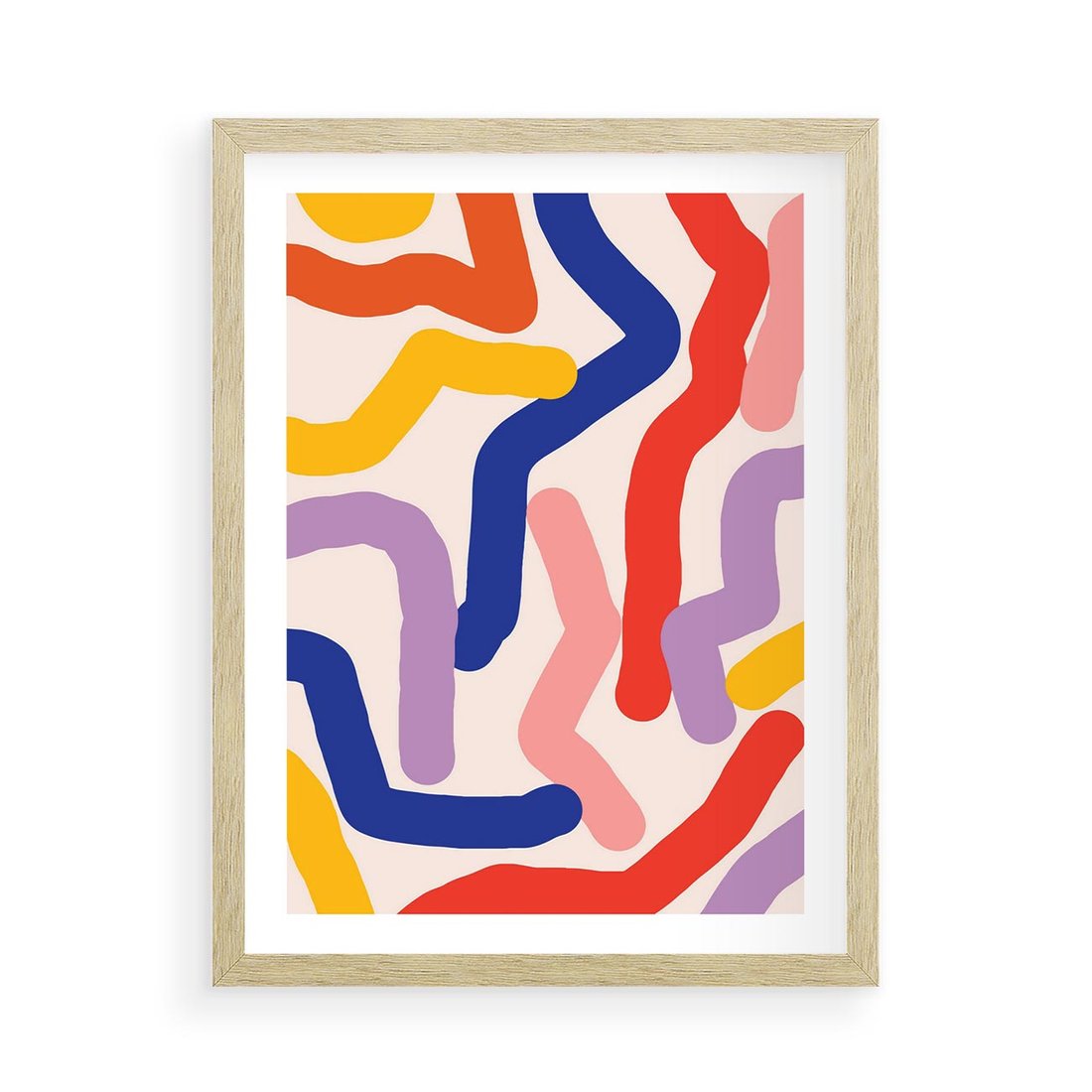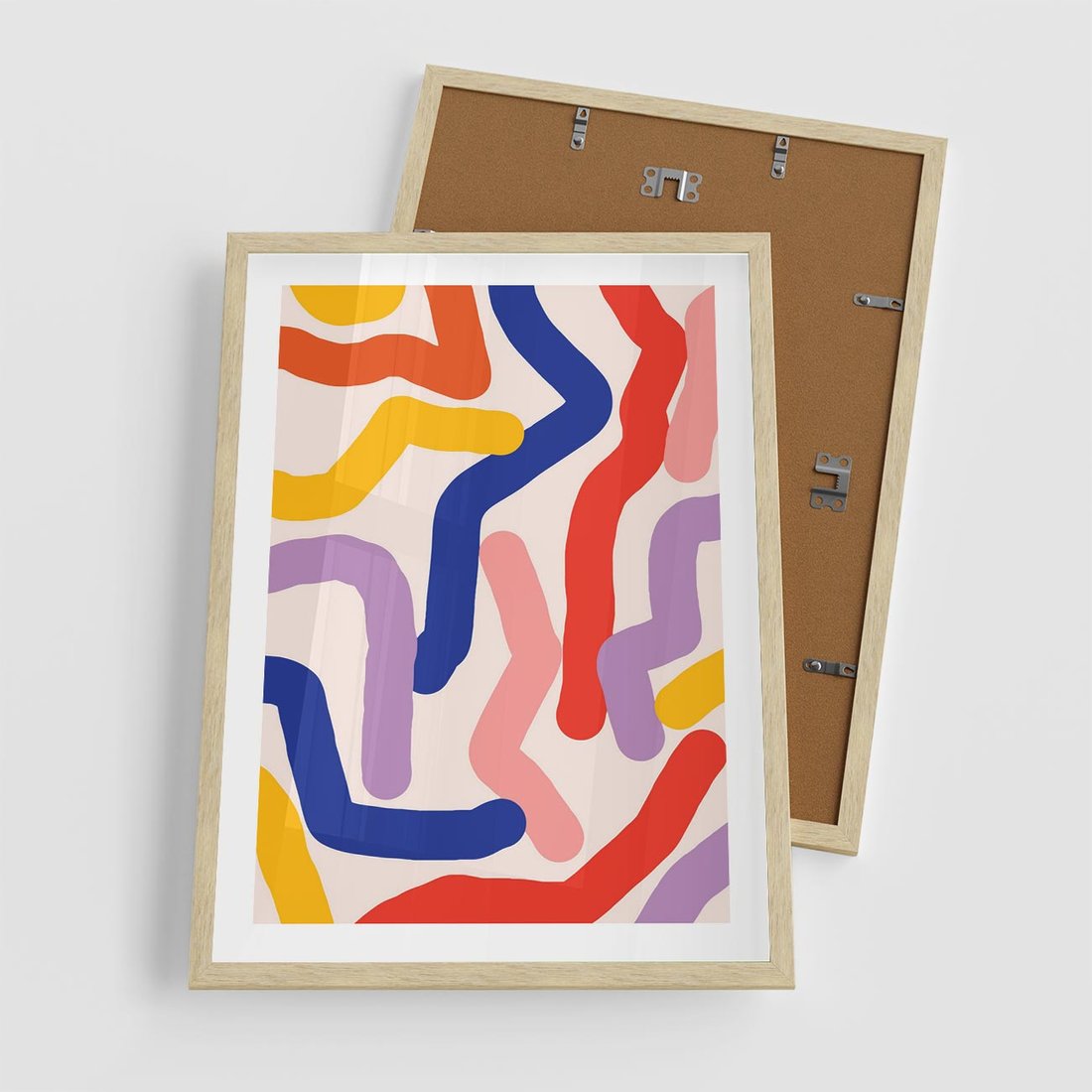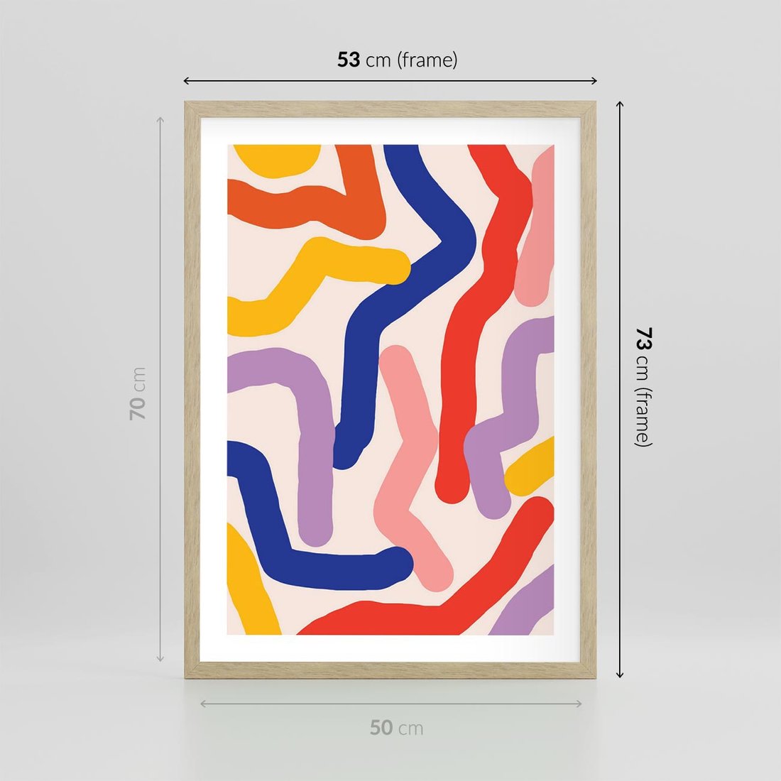 Plakat w ramie 50x70 - Abstrakcyjne Dialogi - abstrakcyjny kolorowy obraz, kolorowe linie - rama drewno