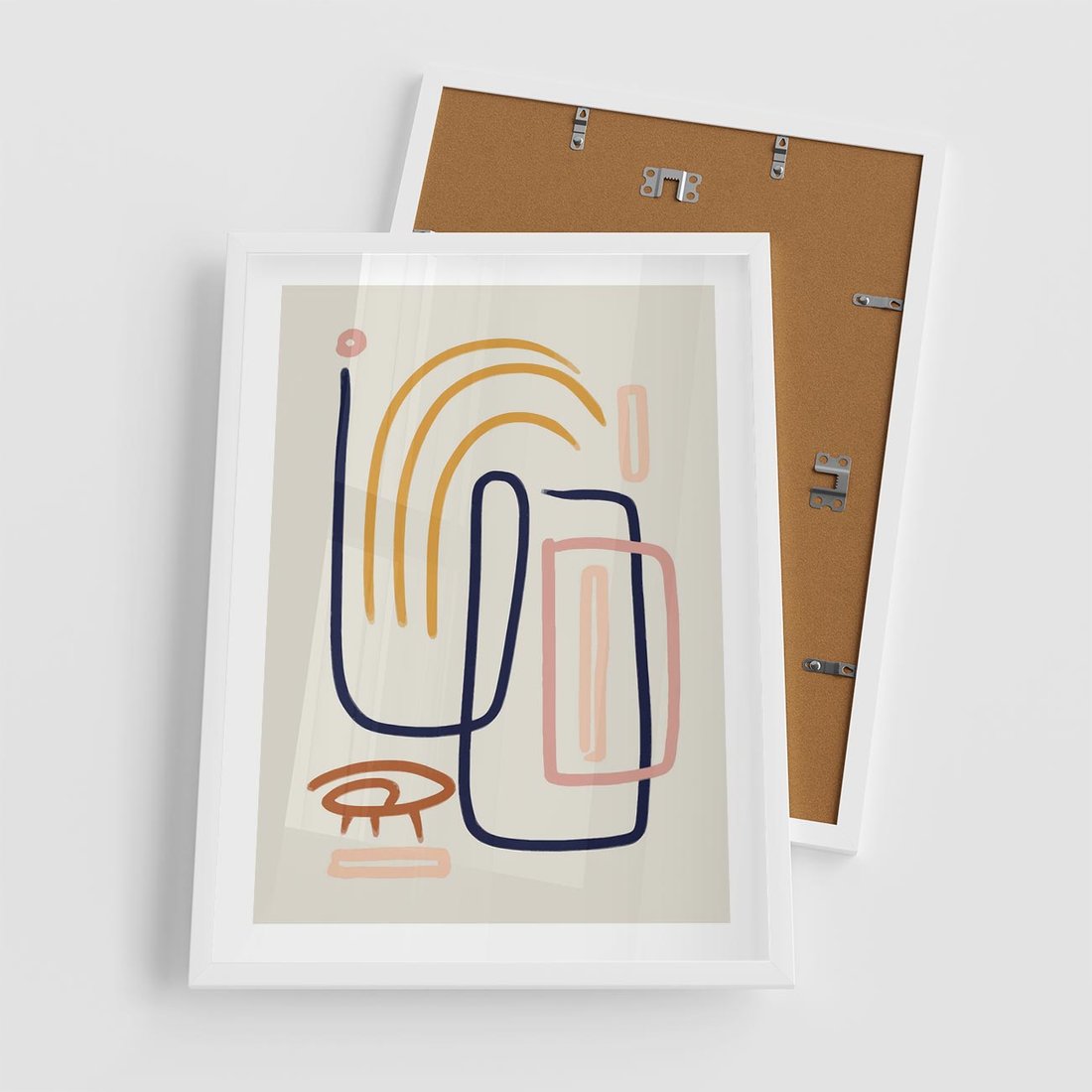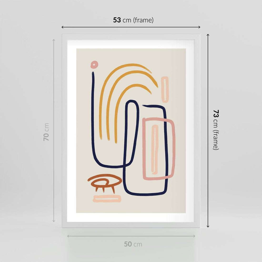 Plakat w ramie 50x70 - Abstrakcyjne Mrugnięcie - abstrakcja w stylu picasso, beżowe tło - rama biała