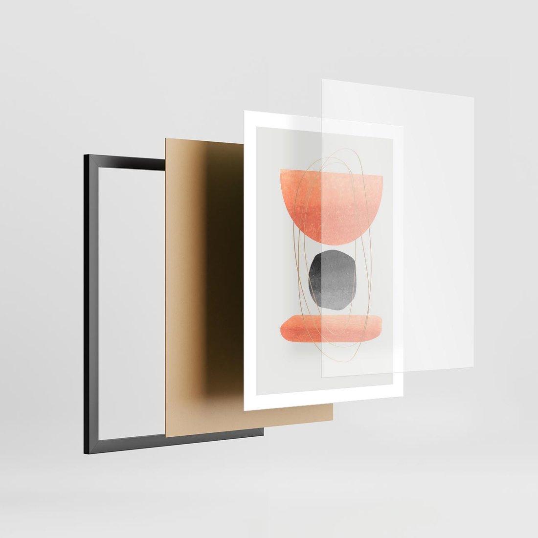 Abstrakcyjne boho plamy z dodatkiem złotych linii tworzą niepowtarzalną i artystyczną kompozycję.