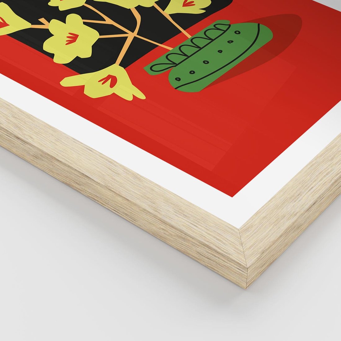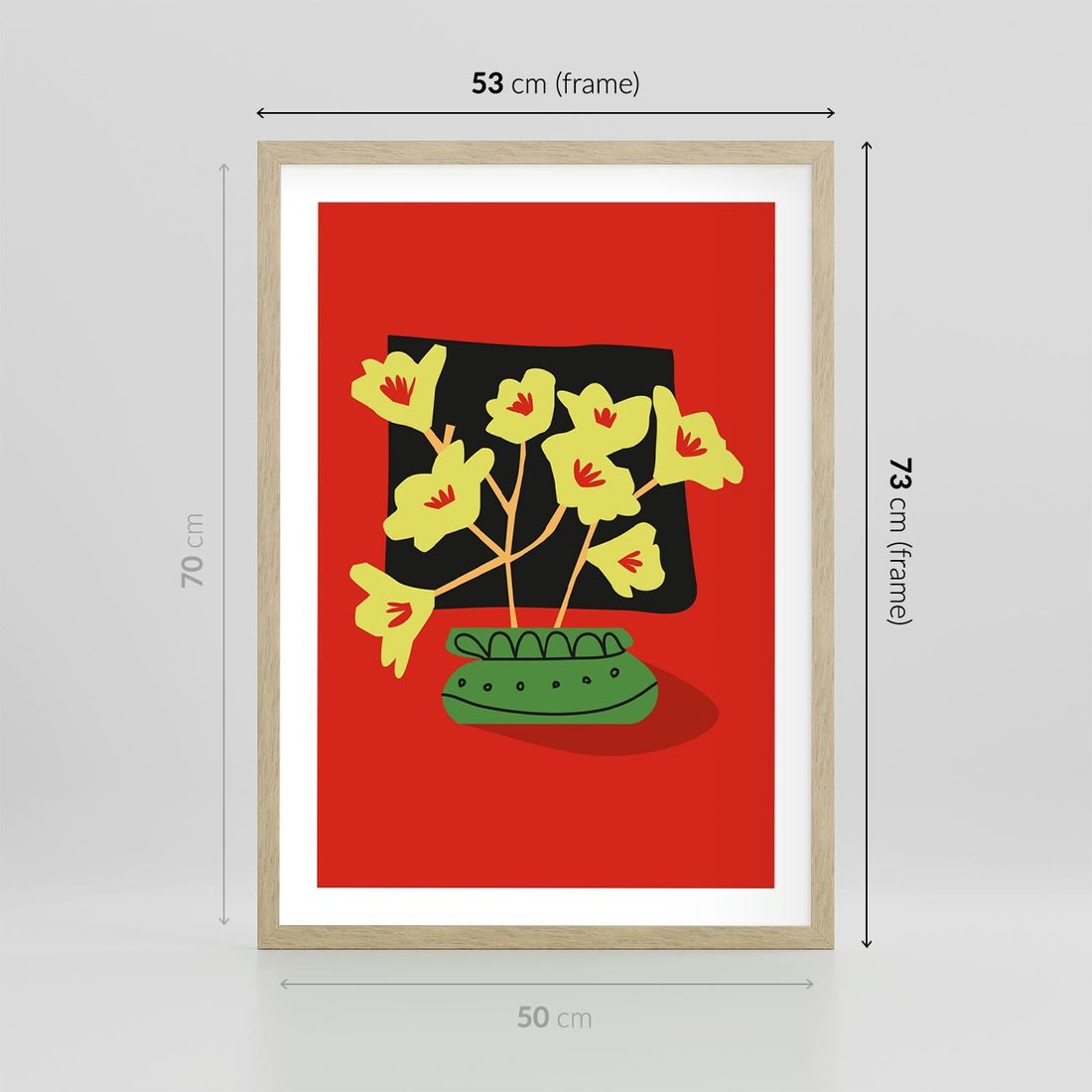 Plakat w ramie 50x70 - Abstrakcyjne Przenikanie - abstrakcyjne kwiaty, czerwone tło - rama drewno
