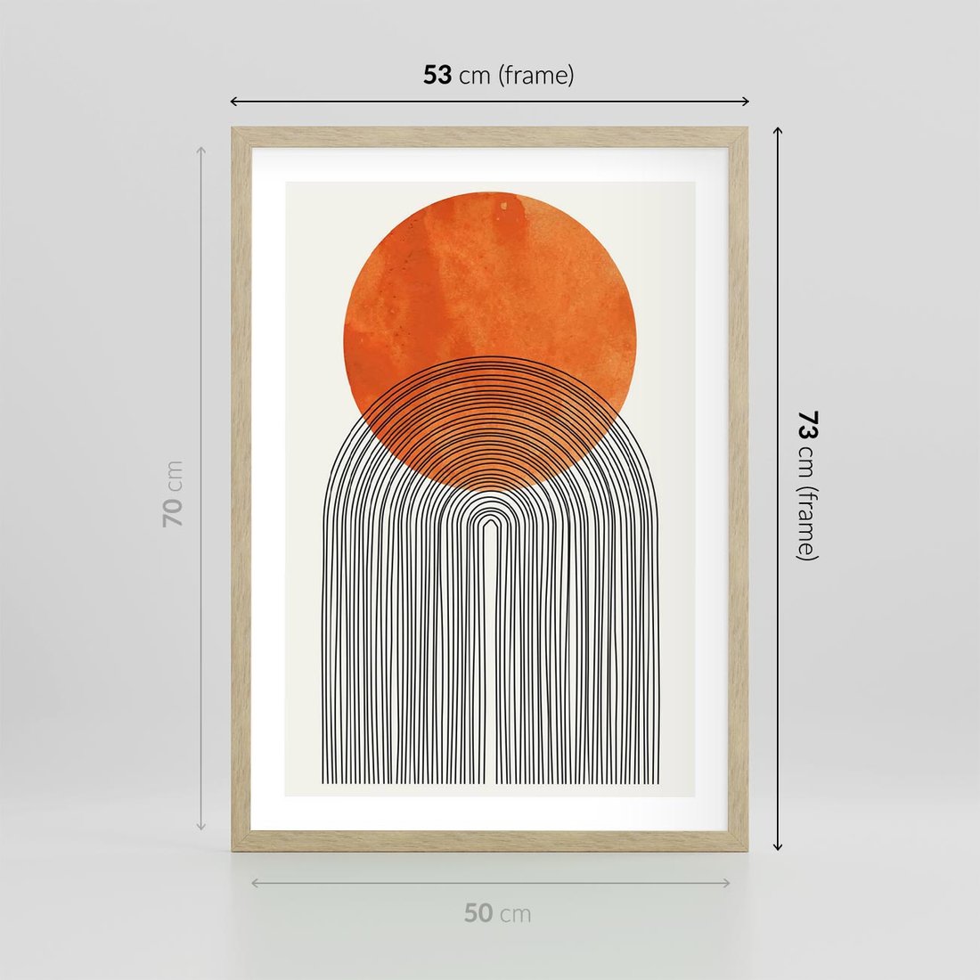 Plakat w ramie 50x70 - Abstrakcyjne Pulsacje - koło, boho styl - rama drewno