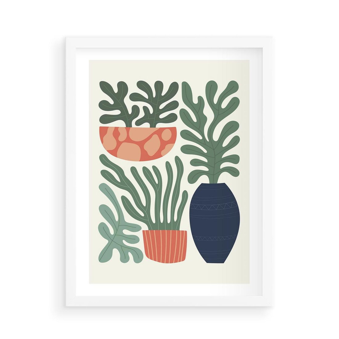 Plakat w ramie 50x70 - Abstrakcyjne Roślinne Formy - nowoczesna grafika, rośliny - rama biała