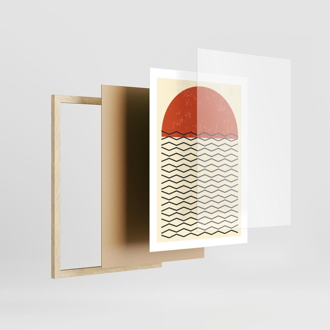 Plakat w ramie 50x70 - Abstrakcyjne Wzory na Plakacie - geometryczna sztuka, nowoczesny plakat - rama drewno