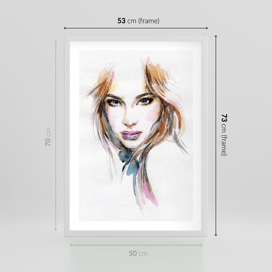 Plakat w ramie 50x70 - Abstrakcyjny portret kobiecy - grafika, kobieta - rama biała