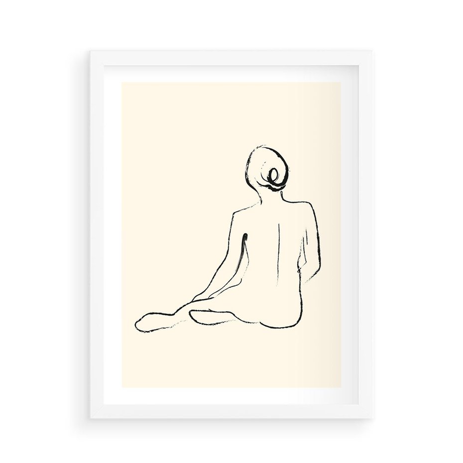 Plakat w ramie 50x70 - Akt w Minimalizmie - kobieta akt, minimalizm - rama biała