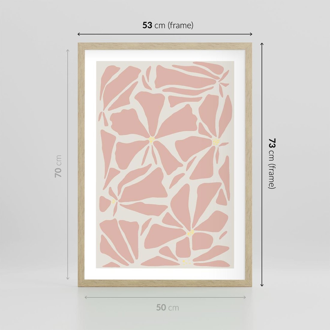 Ta abstrakcyjna kompozycja boho przedstawia delikatne kwiaty o wyrazistym pudrowym różu. Ich nieregularne formy i subtelne linie tworzą unikatową harmonię. Ten obraz wprowadzi do Twojego wnętrza nutę natury i artystycznego uroku.