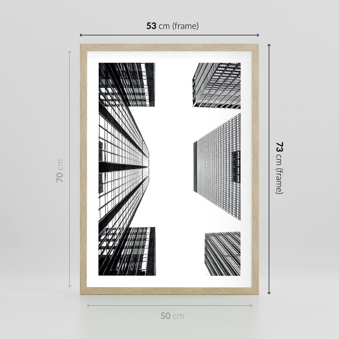 Plakat w ramie 50x70 - Architektoniczna Symetria - architektura, wysoki wieżowiec - rama drewno