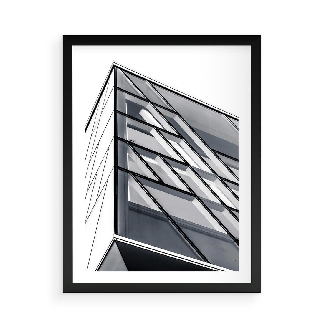 Plakat w ramie 50x70 - Architektura Przyszłości: Czarno-Białe Ujęcie - nowoczesna architektura, czarno białe zdjęcie - rama czarna