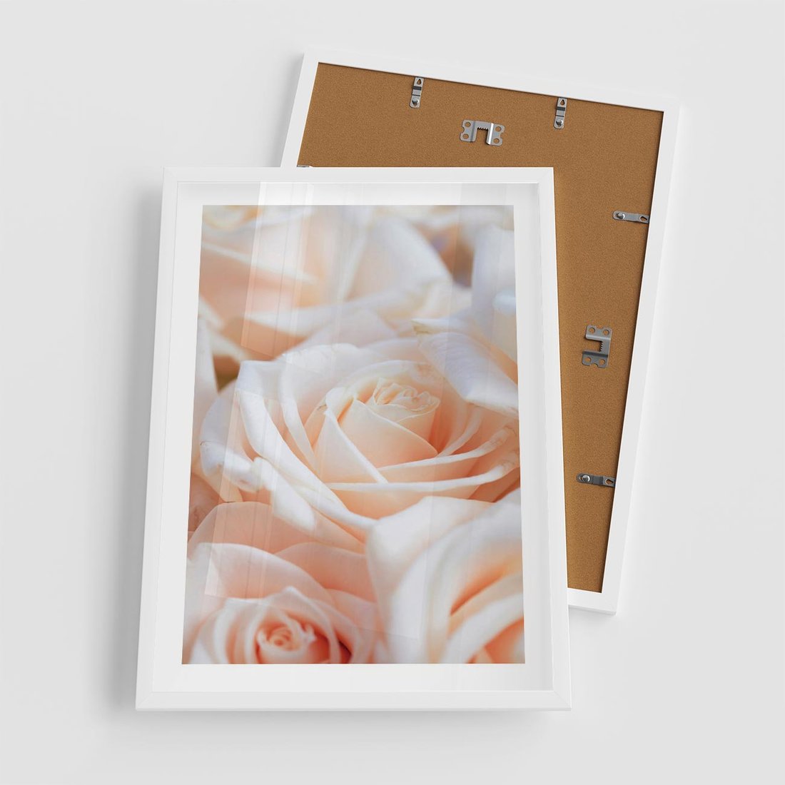 Plakat w ramie 50x70 - Aromatyczna Piękność - płatki herbacianej róży, kwiaty - rama biała