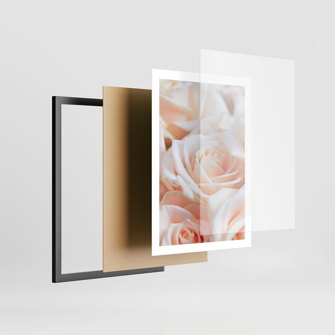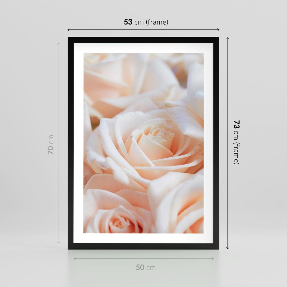 Plakat w ramie 50x70 - Aromatyczna Piękność - płatki herbacianej róży, kwiaty - rama czarna