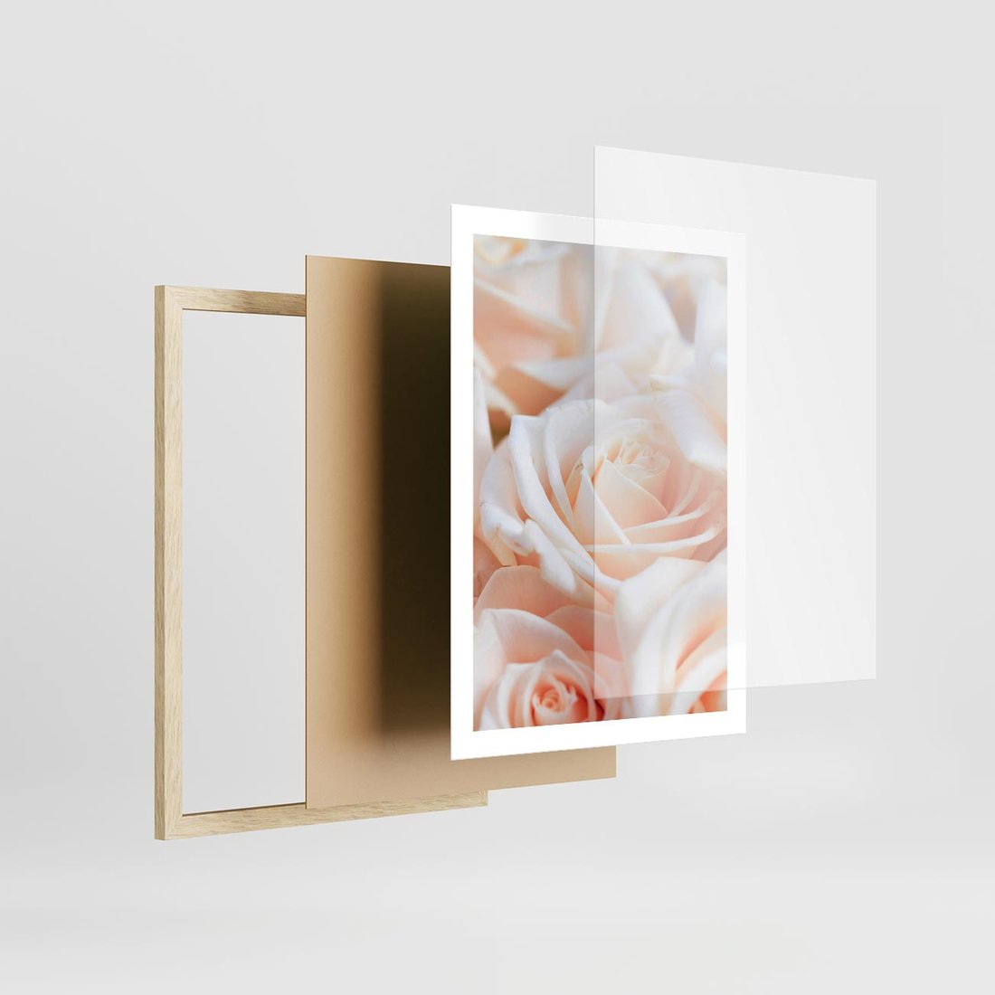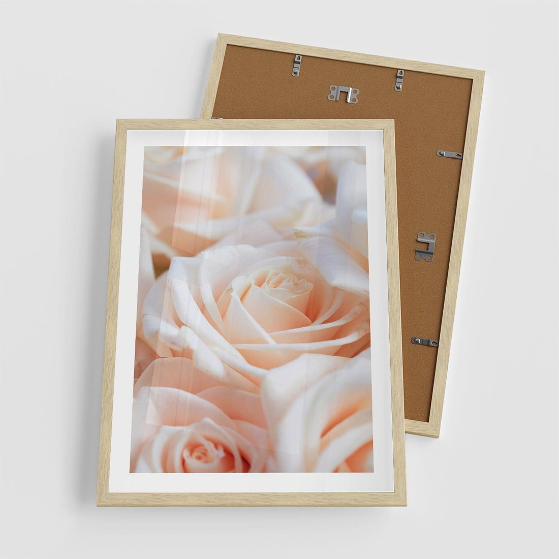 Plakat w ramie 50x70 - Aromatyczna Piękność - płatki herbacianej róży, kwiaty - rama drewno
