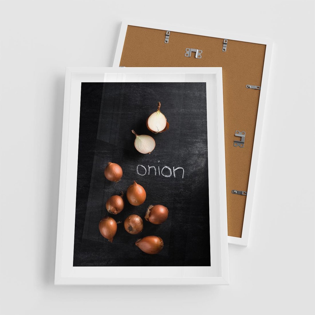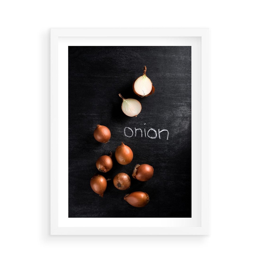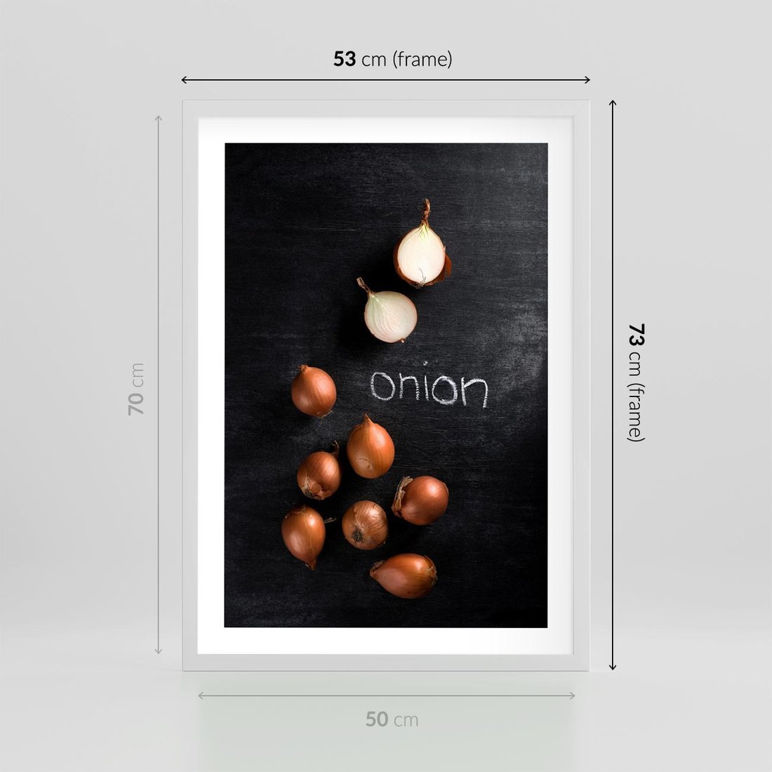 Plakat w ramie 50x70 - Aromatyczne Inspiracje - cebula, kuchnia - rama biała