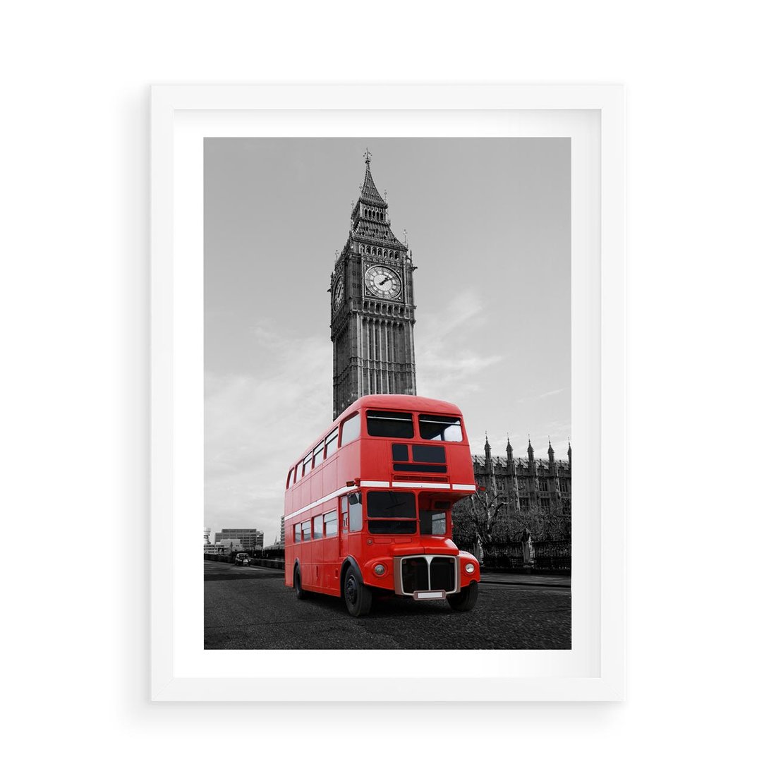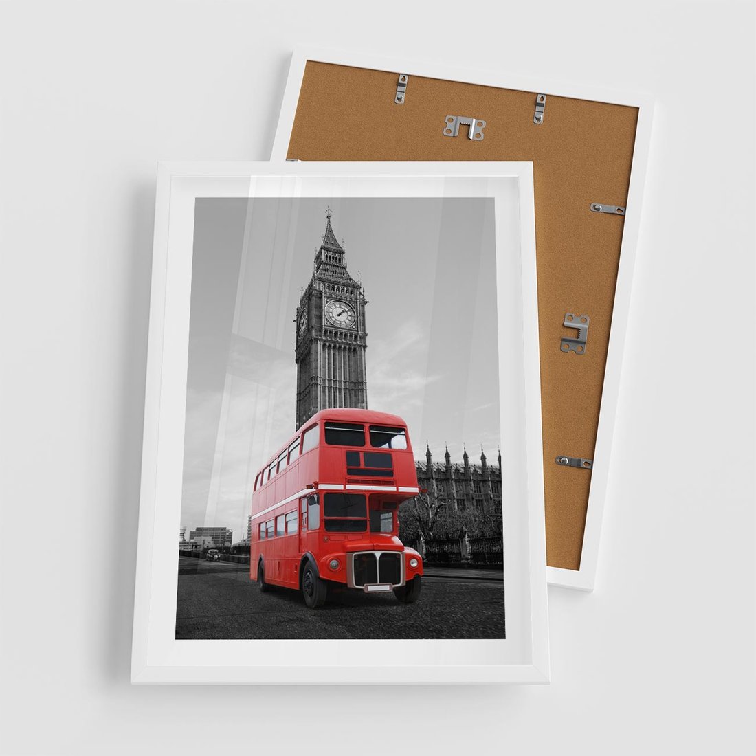 Plakat w ramie 50x70 - Autobusy w tętniącym życiem Londynie - Londyn, autobus - rama biała