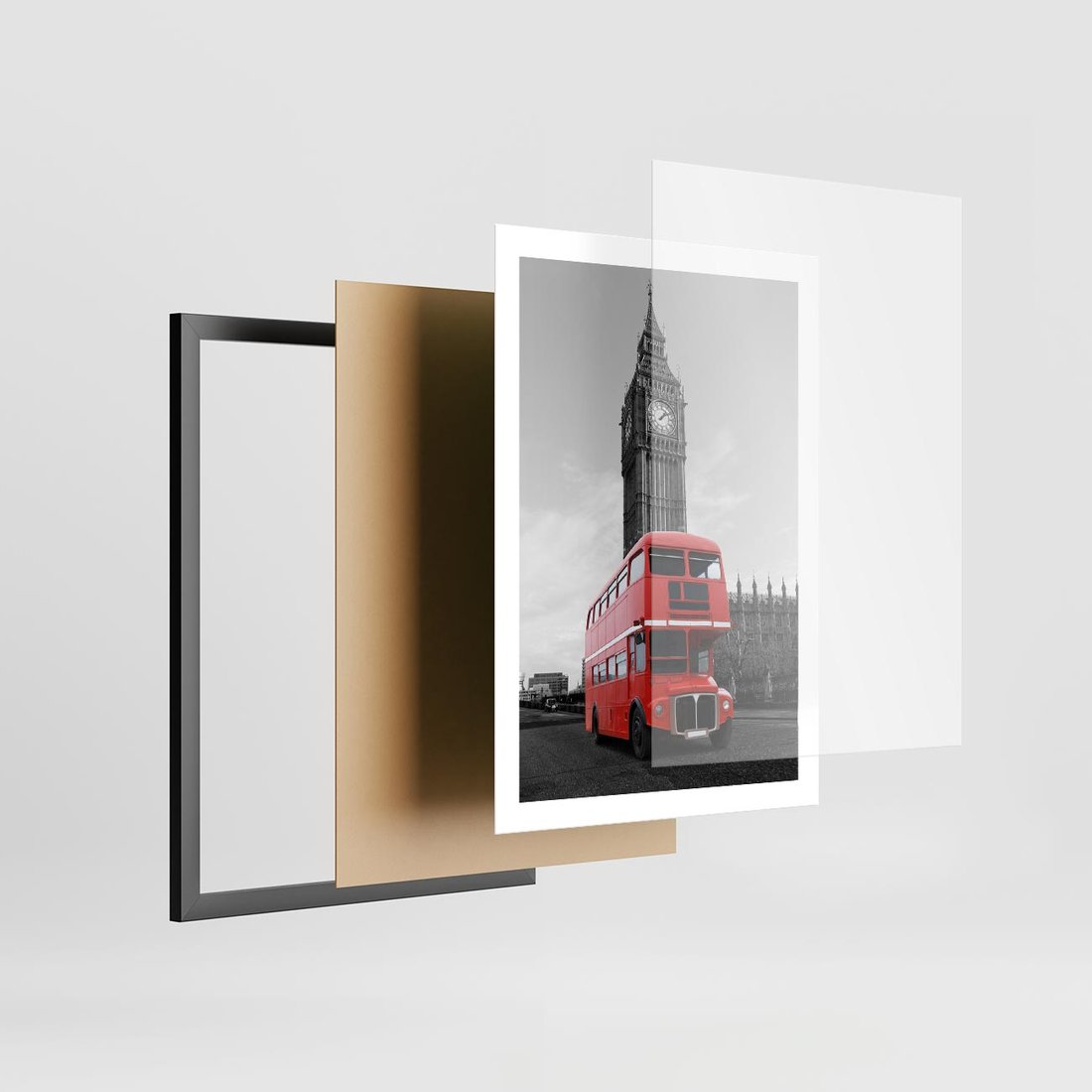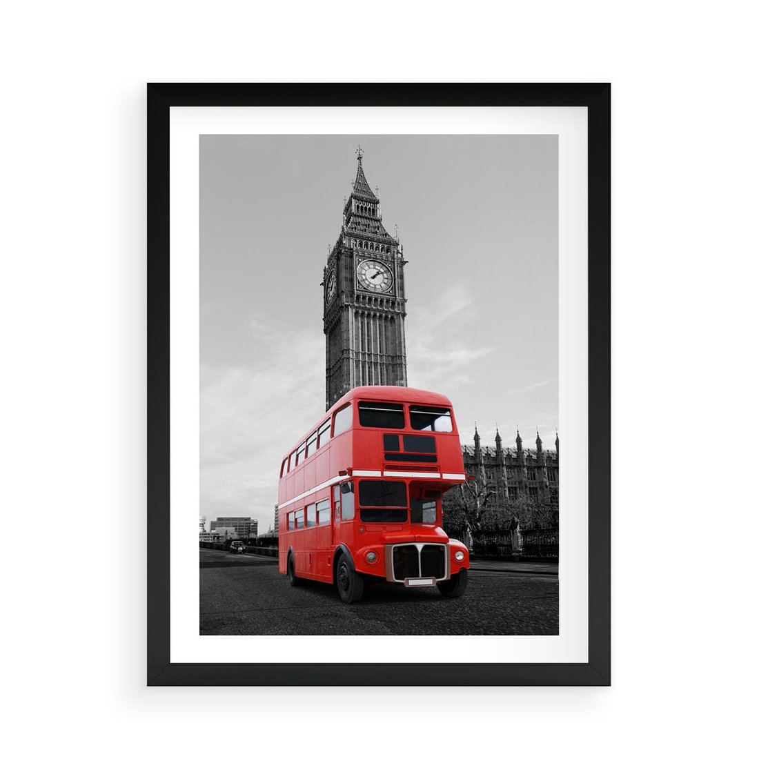 Plakat w ramie 50x70 - Autobusy w tętniącym życiem Londynie - Londyn, autobus - rama czarna