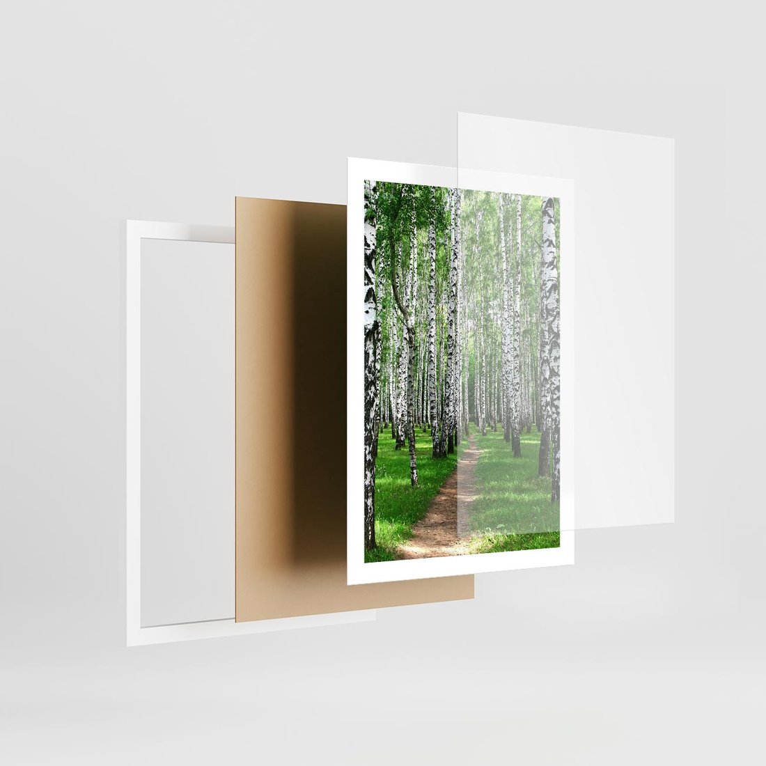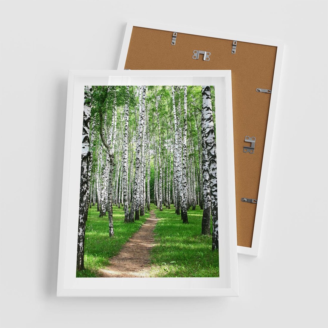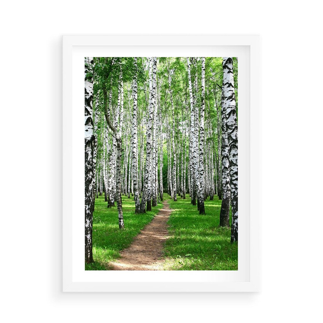 Plakat w ramie 50x70 - Bajkowy las pełen brzóz - las, brzozy - rama biała