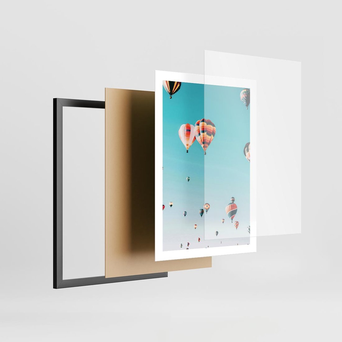 Plakat w ramie 50x70 - Balonowa Ekscytacja - balony latają w powietrzu, wyścigi balonów - rama czarna