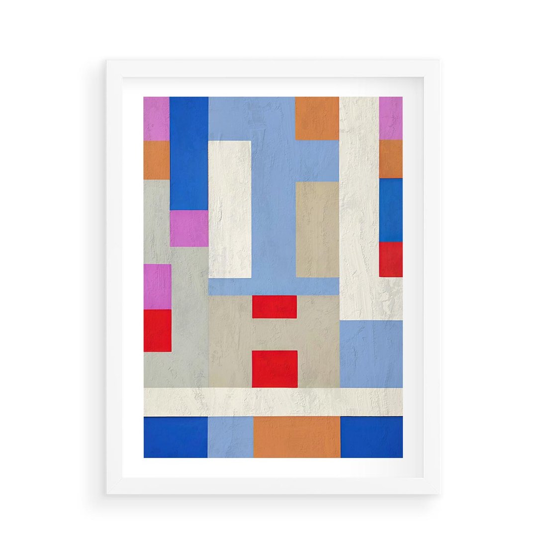 Plakat w ramie 50x70 - Bezczasowe Przenikanie Kształtów - abstrakcyjne geometryczne kształty, olejny obraz - rama biała