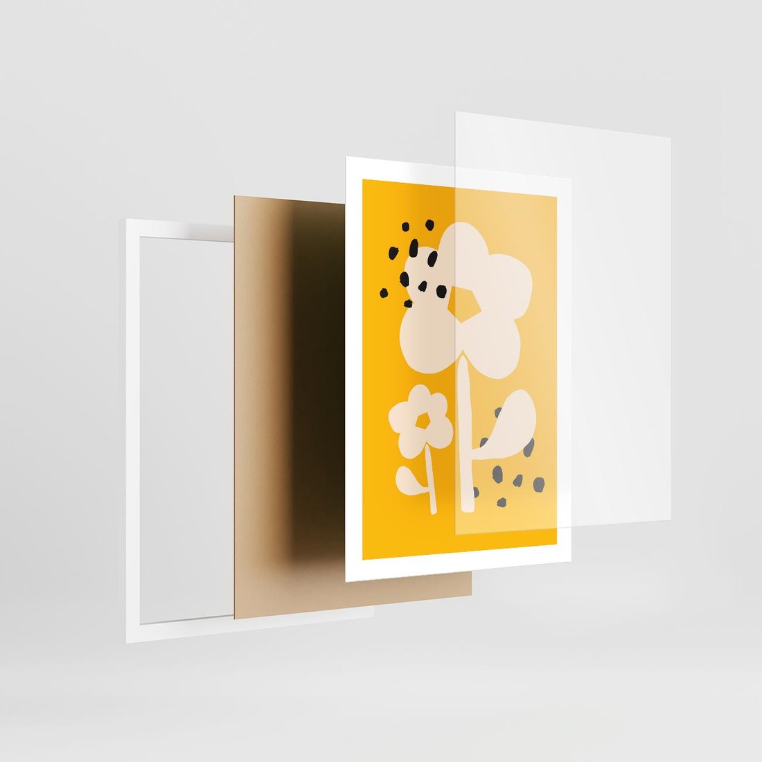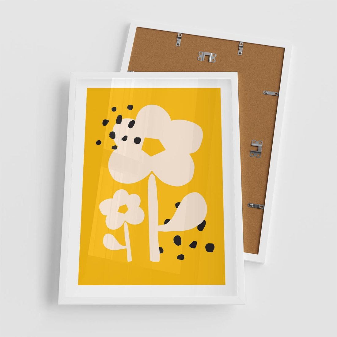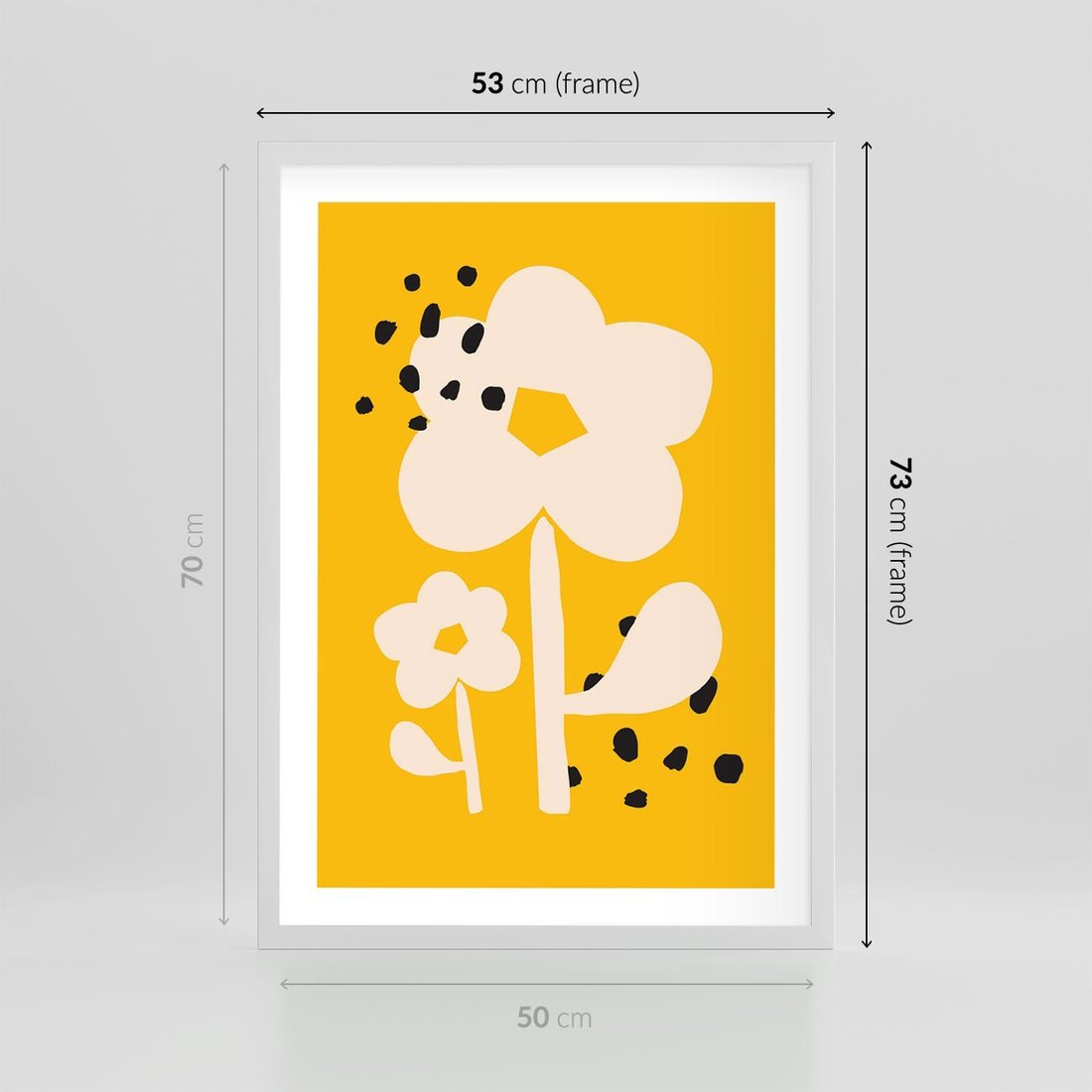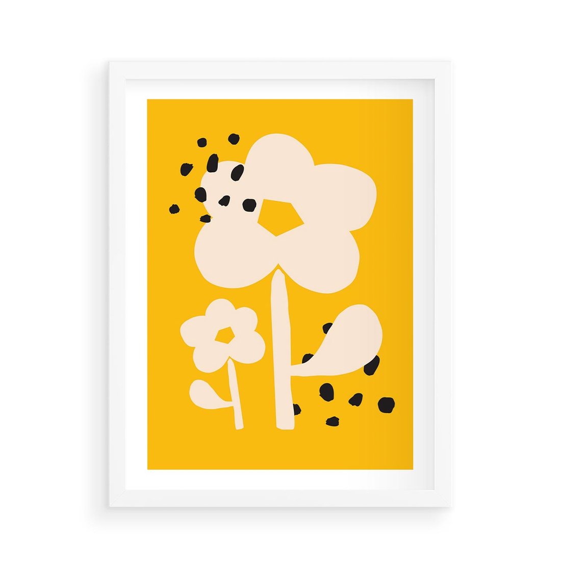 Ten abstrakcyjny plakat przedstawia kwiat w dynamicznym stylu, na tle intensywnego żółtego koloru z czarnymi plamkami. Sztuka ta emanuje energią i ekspresją, tworząc wyjątkową przestrzeń wizualną, która może ożywić każde wnętrze.