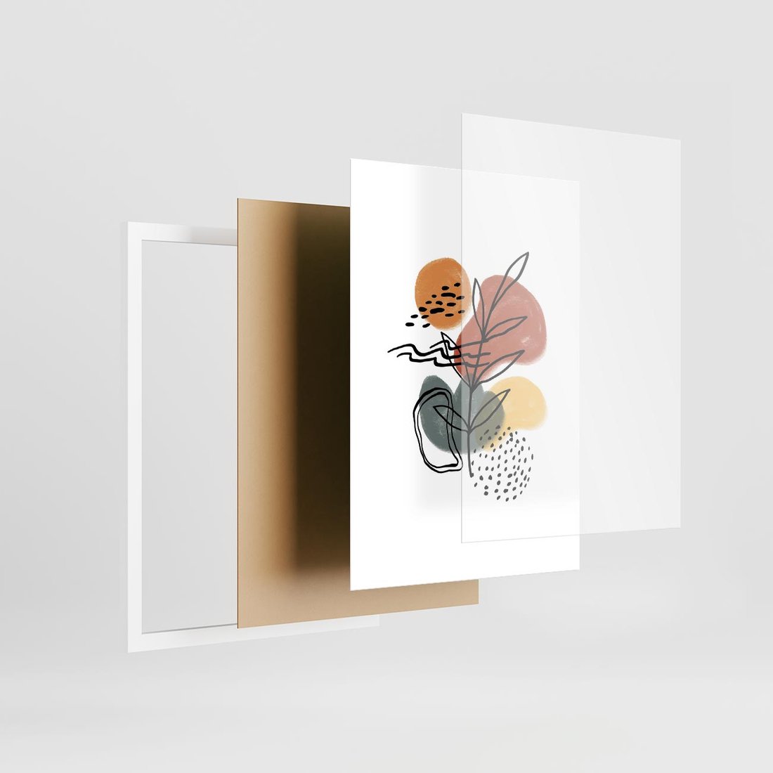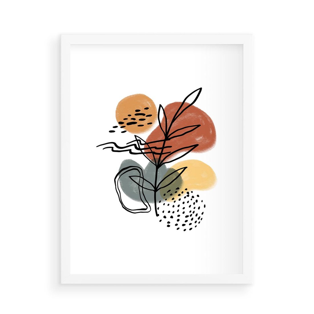Nasza nowoczesna sztuka to abstrakcyjna kompozycja, w której czarne szkice elementów roślinnych łączą się z delikatnymi akwarelowymi plamami. To artystyczne połączenie przynosi do Twojej przestrzeni wyjątkowy wygląd, tworząc dynamiczną i interesującą atmosferę.