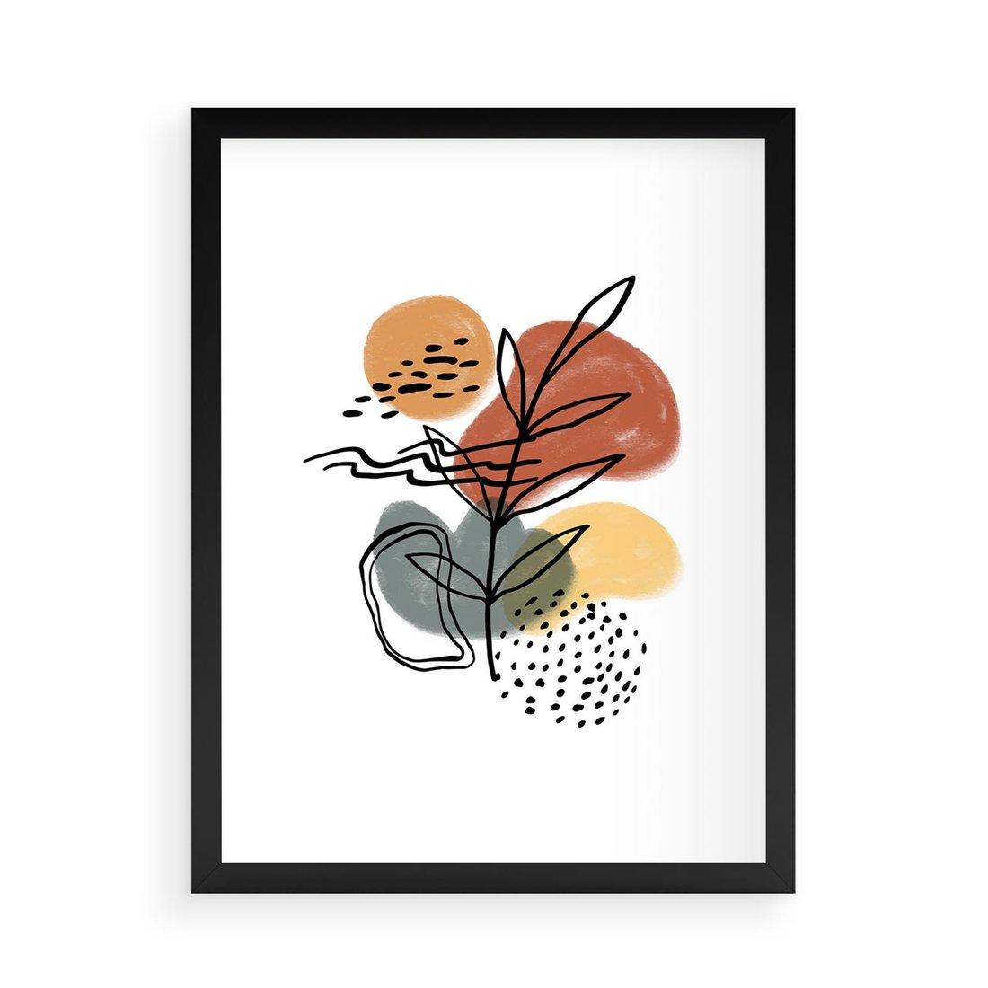 Nasza nowoczesna sztuka to abstrakcyjna kompozycja, w której czarne szkice elementów roślinnych łączą się z delikatnymi akwarelowymi plamami. To artystyczne połączenie przynosi do Twojej przestrzeni wyjątkowy wygląd, tworząc dynamiczną i interesującą atmosferę.