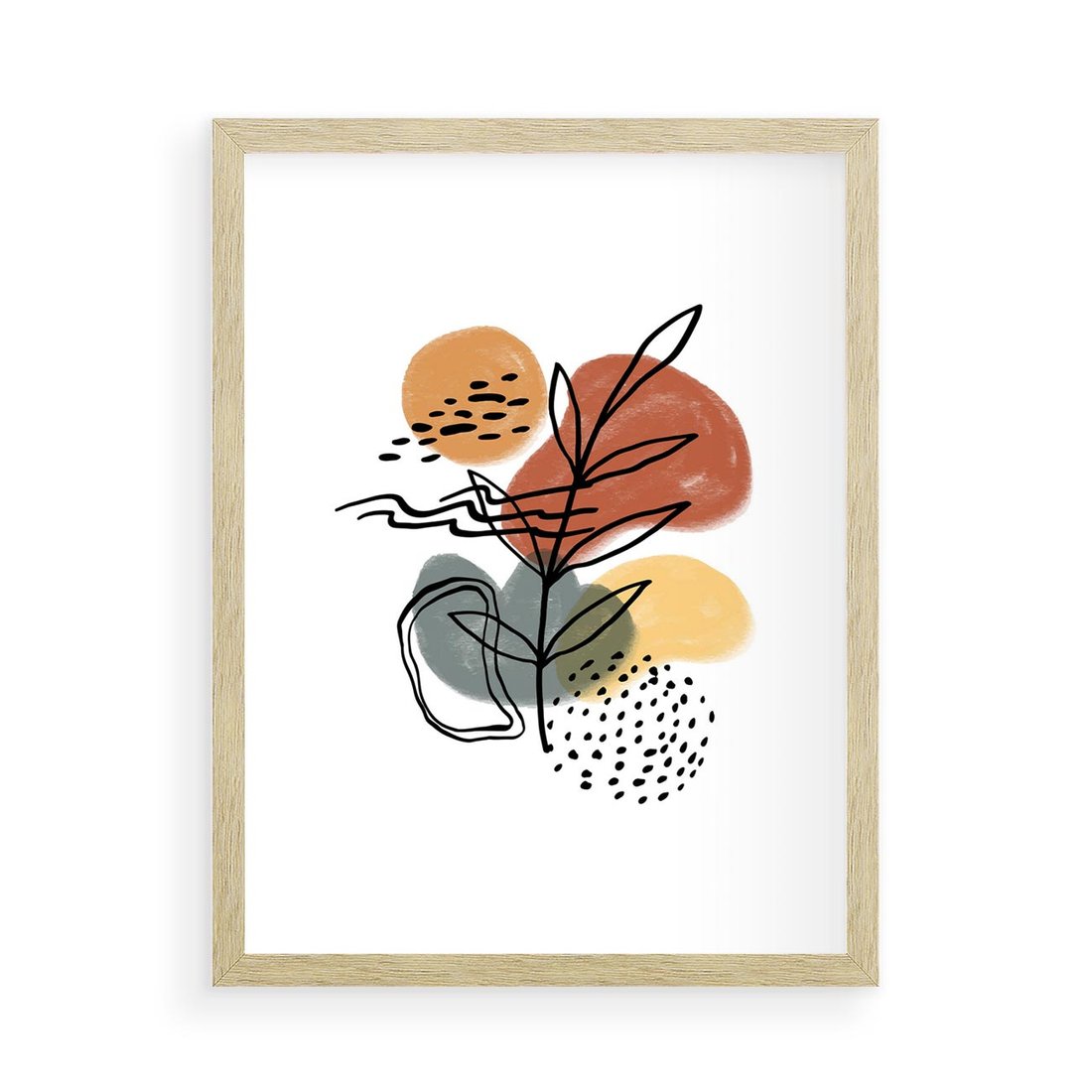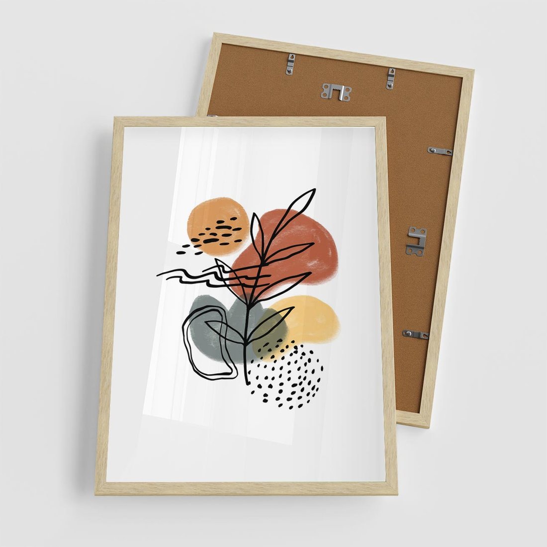 Nasza nowoczesna sztuka to abstrakcyjna kompozycja, w której czarne szkice elementów roślinnych łączą się z delikatnymi akwarelowymi plamami. To artystyczne połączenie przynosi do Twojej przestrzeni wyjątkowy wygląd, tworząc dynamiczną i interesującą atmosferę.