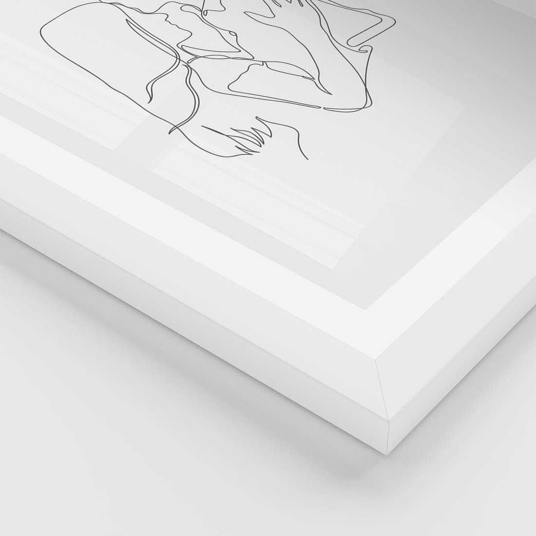 Delikatny szkic przedstawiający parę zakochanych - kobietę i mężczyznę, narysowaną jedną ciągłą linią. Sztuka oddaje piękno prostoty i miłości.