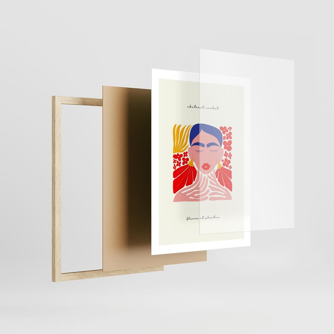 Ta sztuka abstrakcyjna ukazuje kobiecą siłę w intensywnych barwach, zrównoważoną delikatną typografią. Kompozycja oddaje moc i subtelność kobiecej natury, tworząc harmonijną opowieść o pięknie.