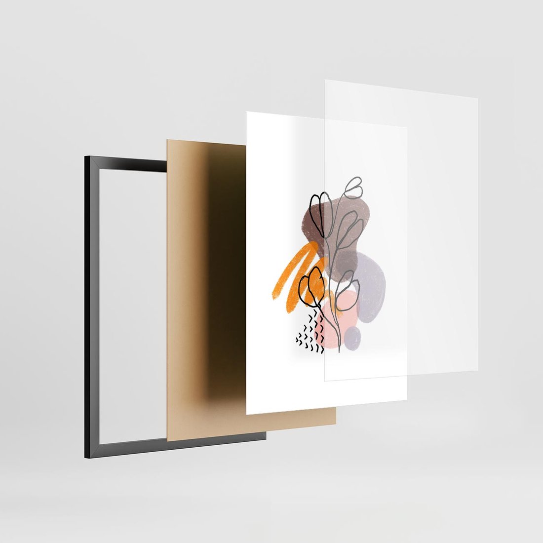 Plakat w ramie 50x70 - Bezgraniczne Widzenia - abstrakcyjna sztuka, liść gałązka - rama czarna